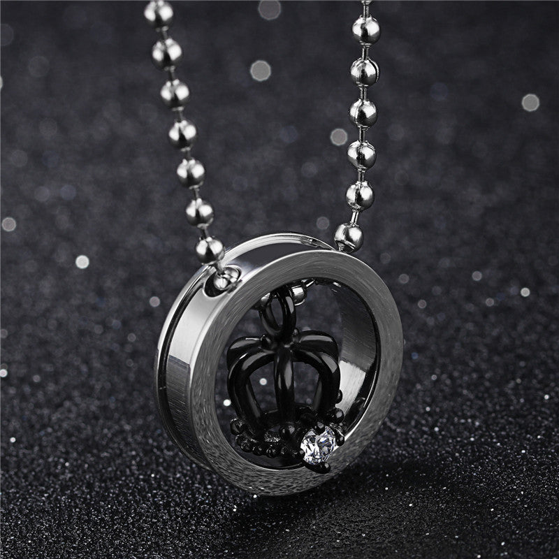 Keep Me in Your Heart King Queen Crown Pendant Necklace Stainless Steel Valentine His & Hers Couples Gift Lovers' Necklaces Set