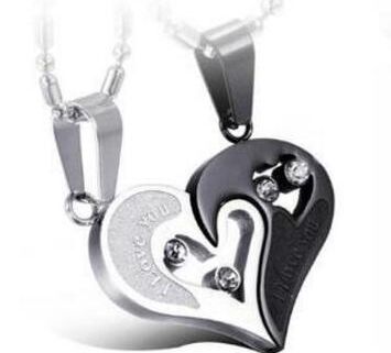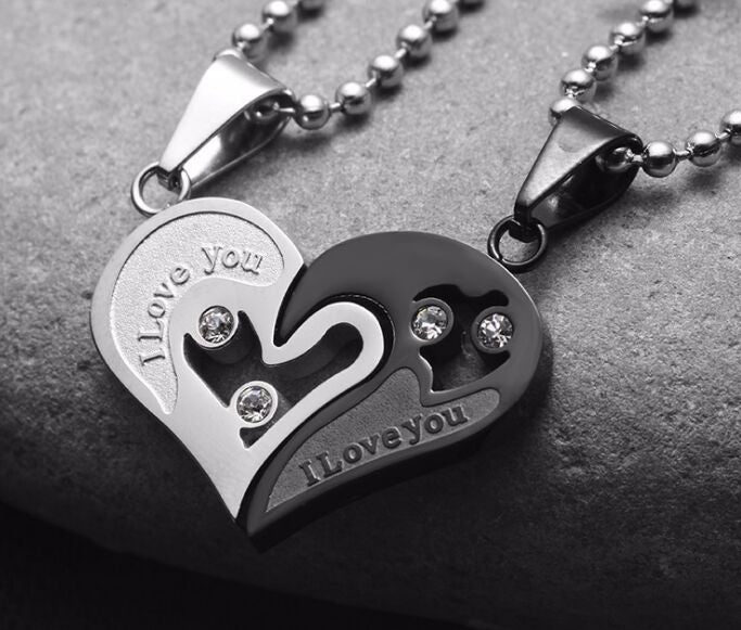 Mens Stainless Steel Chain Black Heart Love Necklaces for Couples Korean Ladies Fashion Trendy Paired Suspension Pendants Model