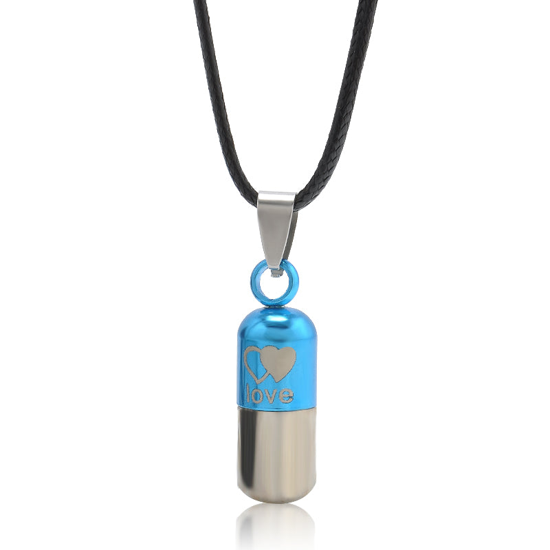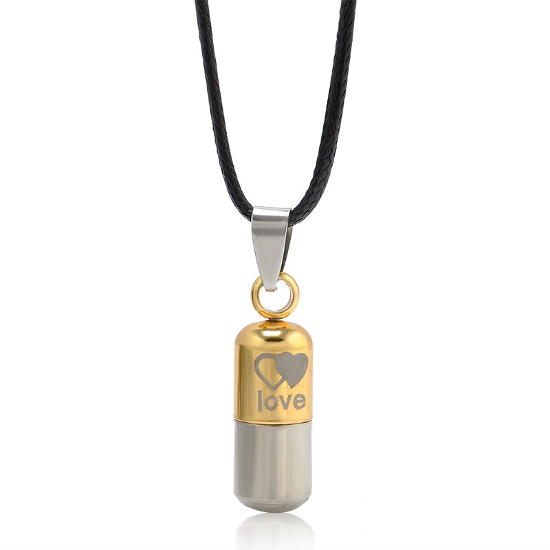 Metal Urn Cremation Save Love Can Open Pills Pendant Necklace Ash Holder Mini Keepsake Jewelry Silver