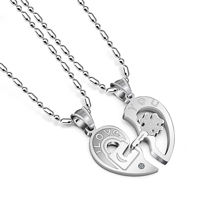 Romantic Stainless Steel Half Heart Pendants Necklaces for Couples Love You Key Lock Promise Necklaces 2PCS ANE089