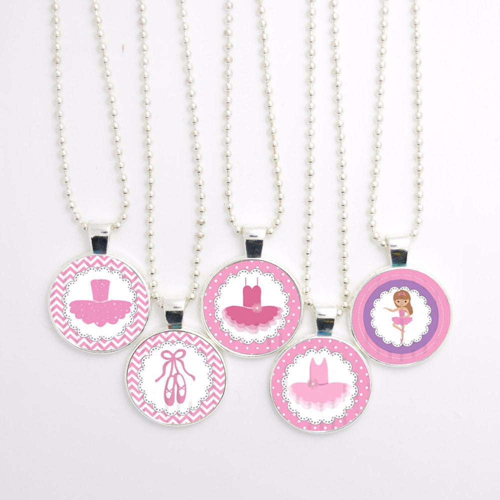 New 5pcs/Lot Adorable Ballerina Girl Necklace, Handmade Glass Cabochon Ball Chain Pendant Necklace, Girl Necklace Party Favors
