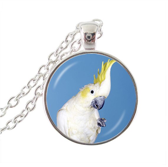 parrot pendant necklace silver plated two parrots photo collar necklace animal jewelry glass dome choker jewellery HZ1
