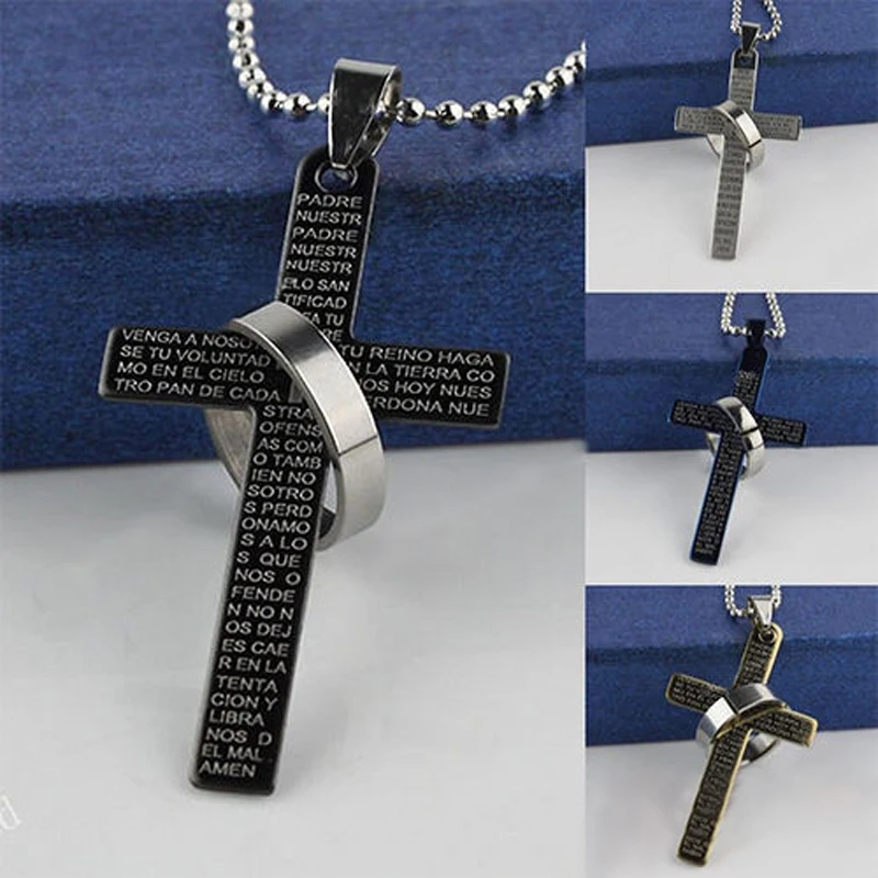 Punk Cross Letter Necklaces&Pendants For Men Stainless Steel Gold Color Male Pendant Necklaces Prayer Lover Jewelry Gift