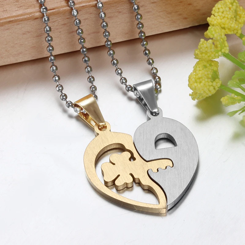 Romantic Stainless Steel Half Heart Pendants Necklaces for Couples Love You Key Lock Promise Necklaces Women Men Keepsake 2PCS