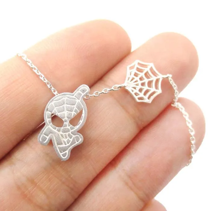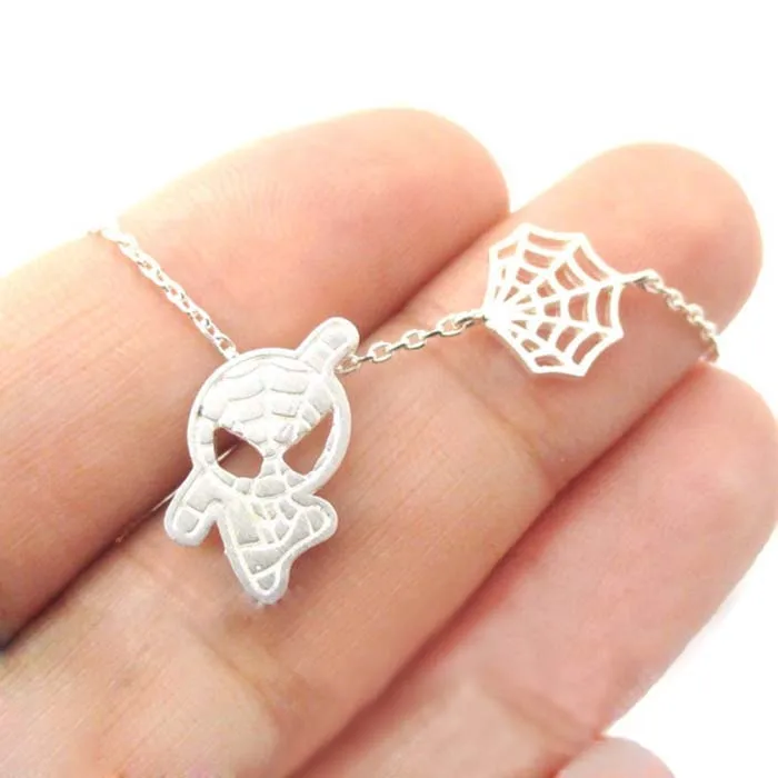 1pc--Spider-Man Homecoming Themed Necklace Spiderman and Spider Web Shaped Charming Design Handmade Statement Jewelry