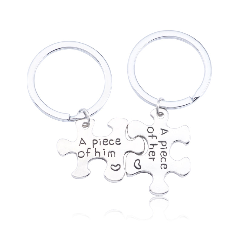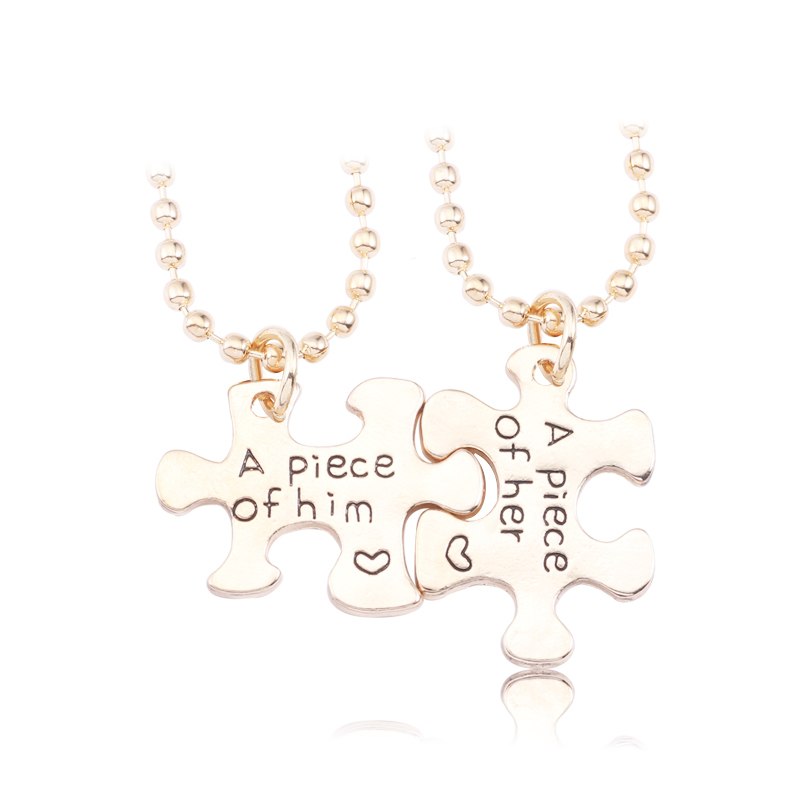 Trendy Puzzle Jigsaw Necklace Letter A Piece Of Her A Piece Of Him Pendant Love Hearts Keychians BBF Lovers' Gifts Drop Shipping