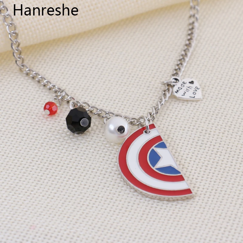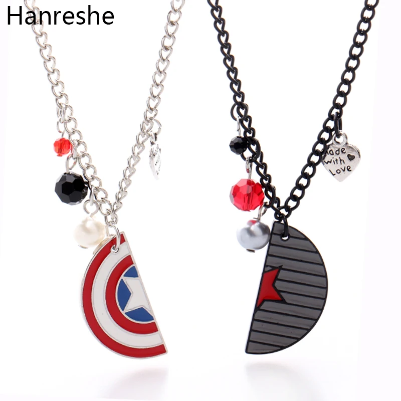 Winter Soldier Captain America Necklace Shield Logo with Crystals and Pearls Pendant The Avengers Best Friend/Lover's Necklaces