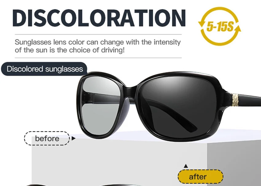 2021 Occhiali da sole fotocromatici da donna di lusso da donna Occhiali da donna polarizzati con montatura grande Occhiali da donna tonalità femminili oculos originali con coperchio