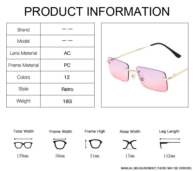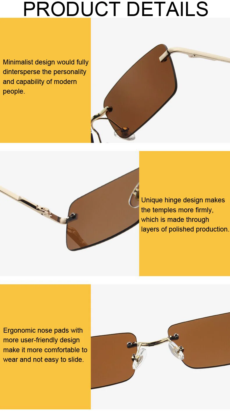 2023 Retro Sunglasses Women Brand Designer Rimless Gradient Sun Glasses Shades Cutting Lens Ladies Frameless Eyeglasses