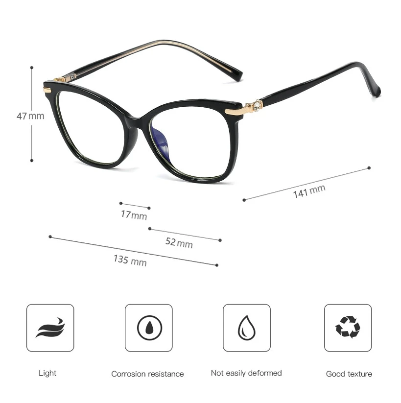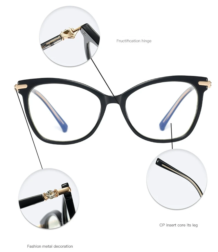 48243 Montature per occhiali TR90 anti luce blu Cat Eye Diamond Occhiali da computer ottici da donna