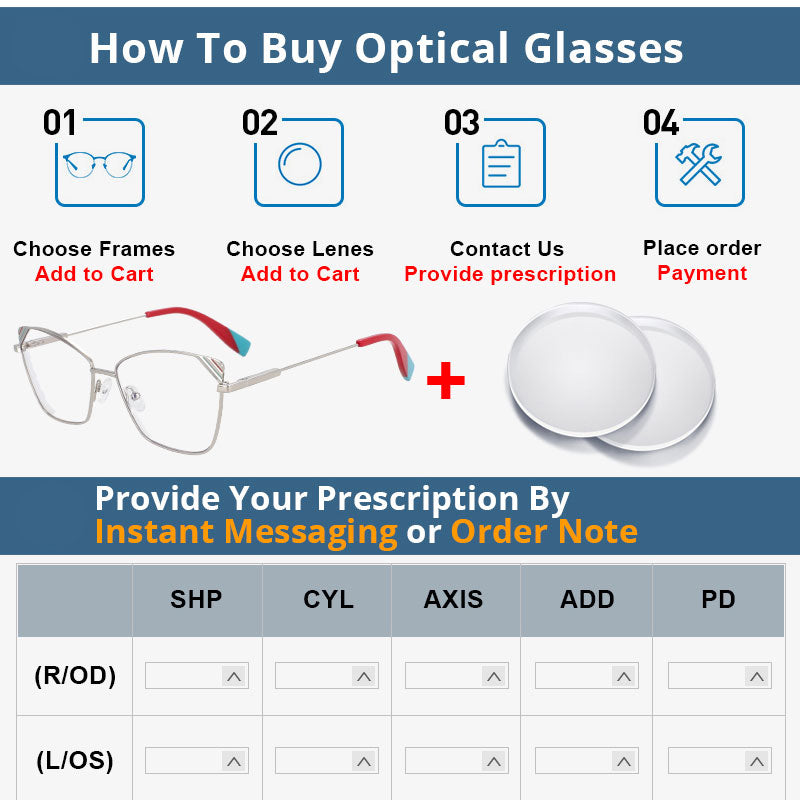 54125 Cat Eye Style Anti Blue Light Metal Optical Glasses Frames Women Computer Eyeglasses