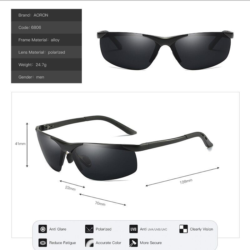 AORON Men Aluminum Alloy Frame Polarized Sunglasses Women Brand Original Goggles UV400 Glasses Male Metal Eyewear Oculos