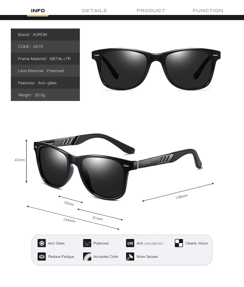 Function : UV400, anti-glare, anti-vertigo,Polarized Sunglasses