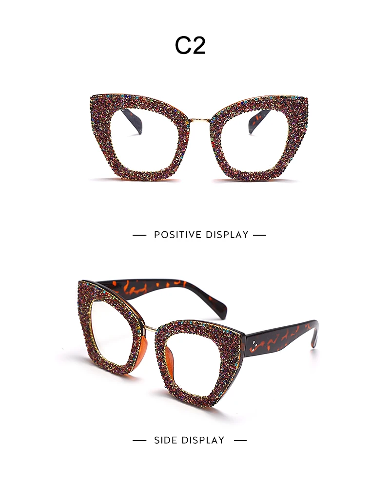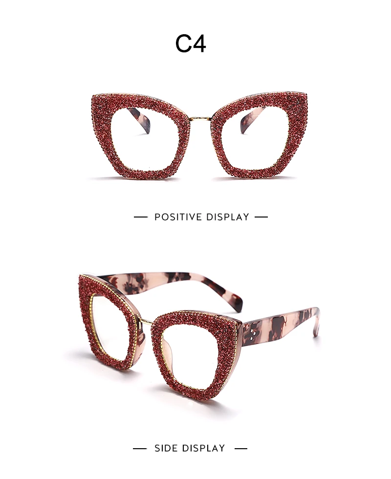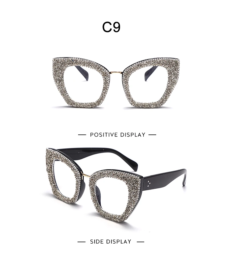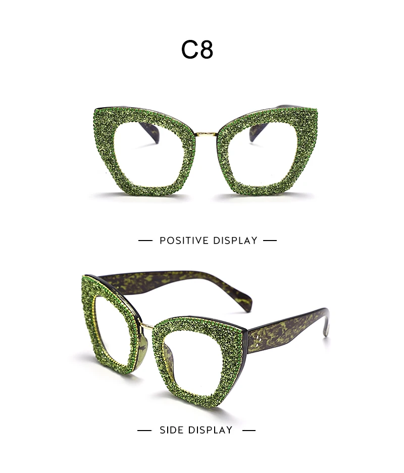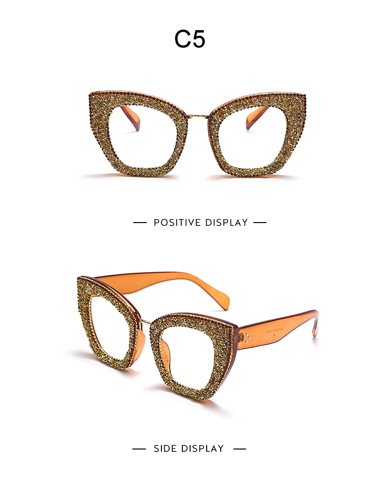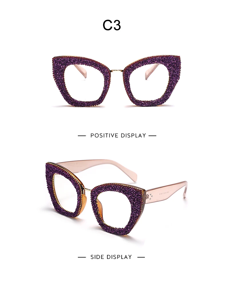 Cat Eye Glitter Glasses Frames Women Diamond Sunglasses Clear Lens Shiny Rhinestone Eyewear Optical Frames