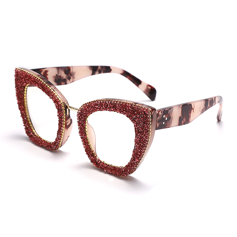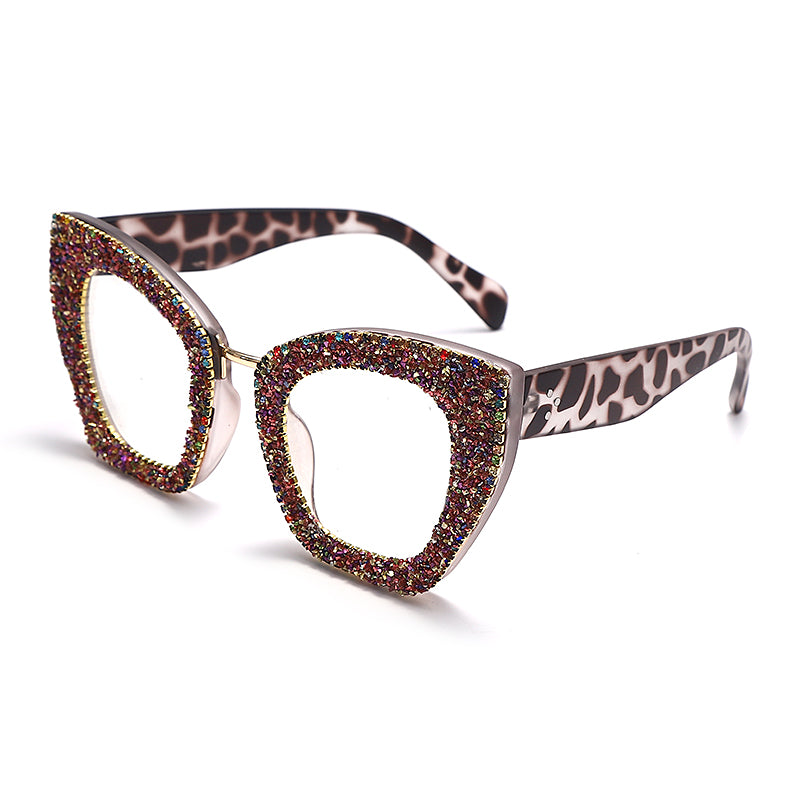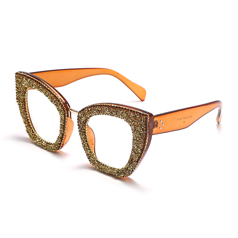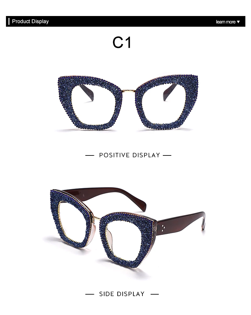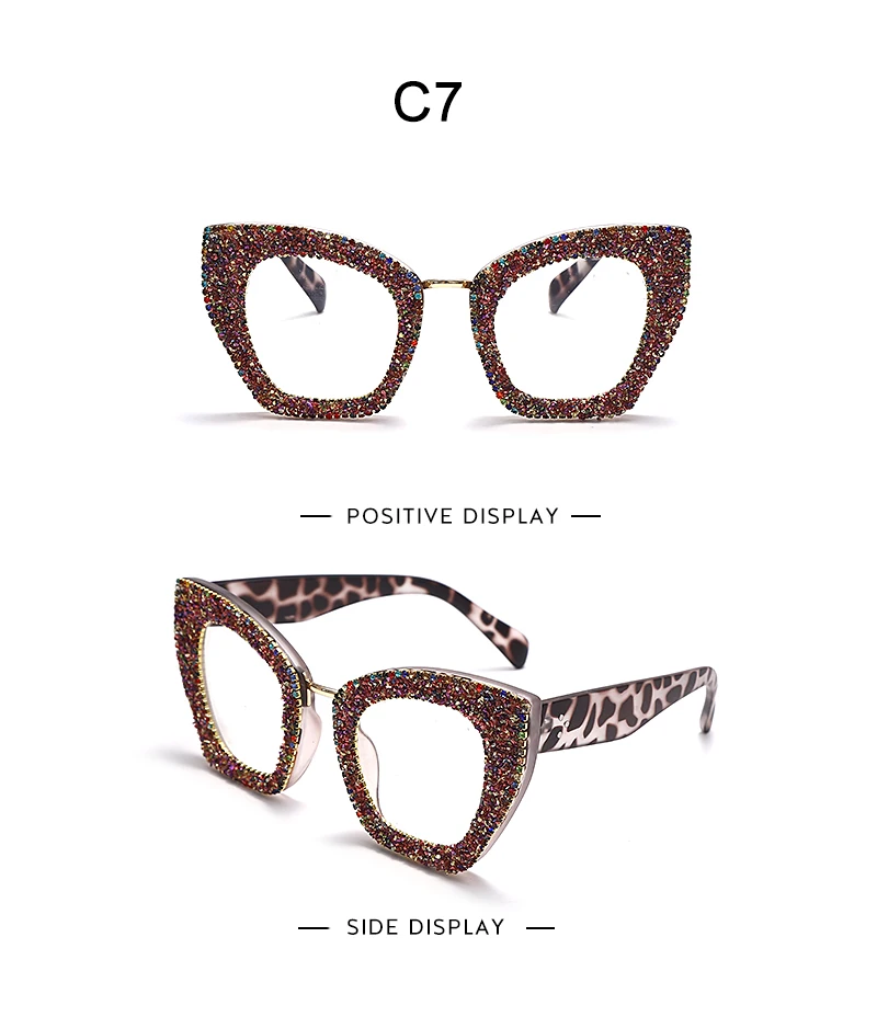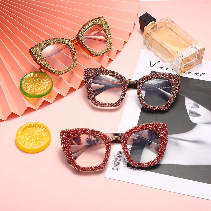 Cat Eye Glitter Glasses Frames Women Diamond Sunglasses Clear Lens Shiny Rhinestone Eyewear Optical Frames