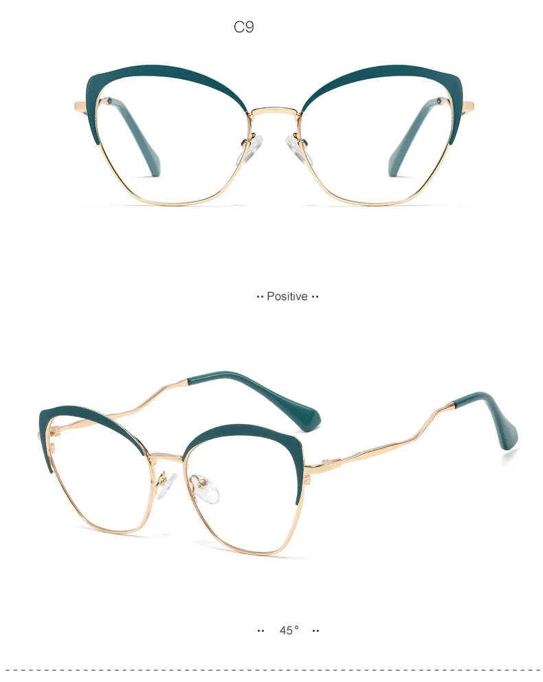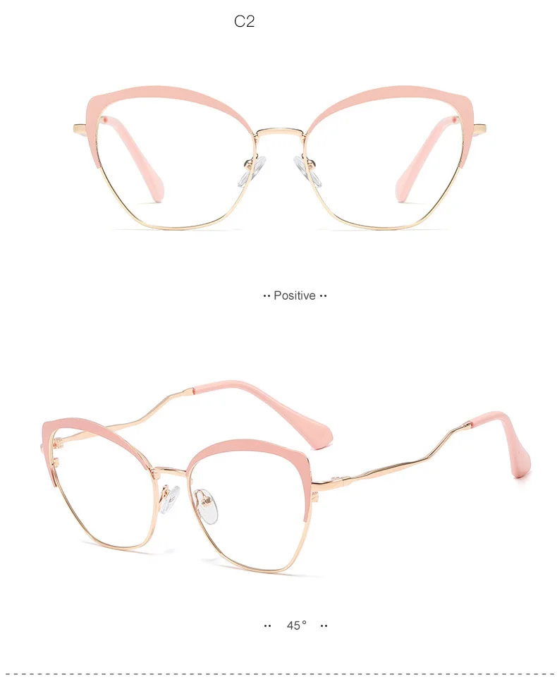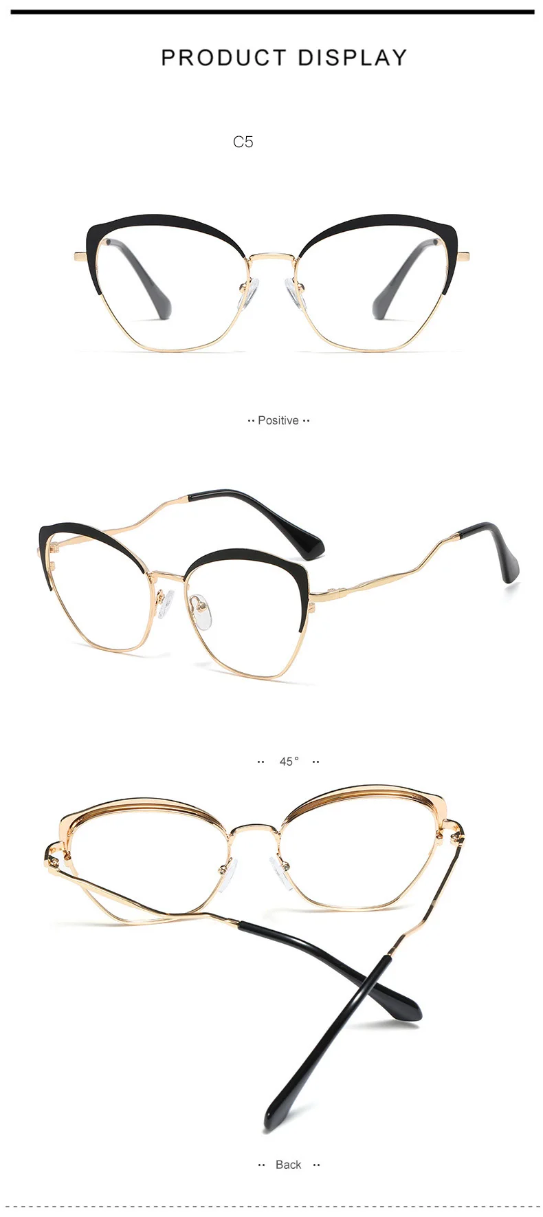 Cat Eye Metallo Specchio Piatto Donne 2023 Del Progettista di Marca Lente Ottica Trasparente Gambe Uniche Retro Occhiali Cornice Miopia Oculos