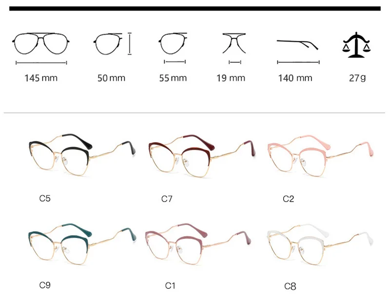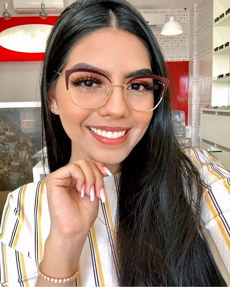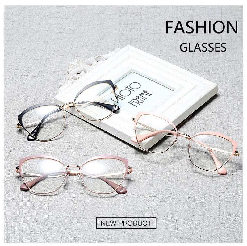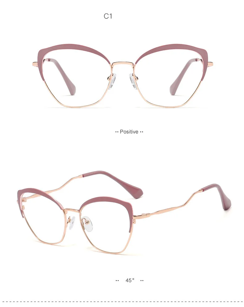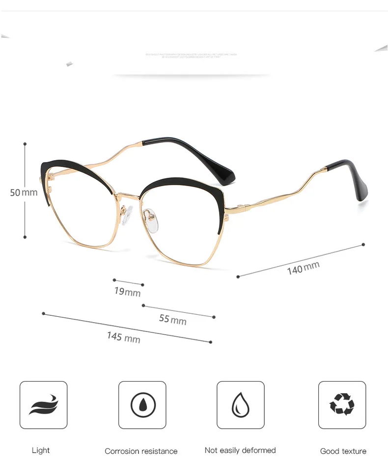 Cat Eye Metallo Specchio Piatto Donne 2023 Del Progettista di Marca Lente Ottica Trasparente Gambe Uniche Retro Occhiali Cornice Miopia Oculos