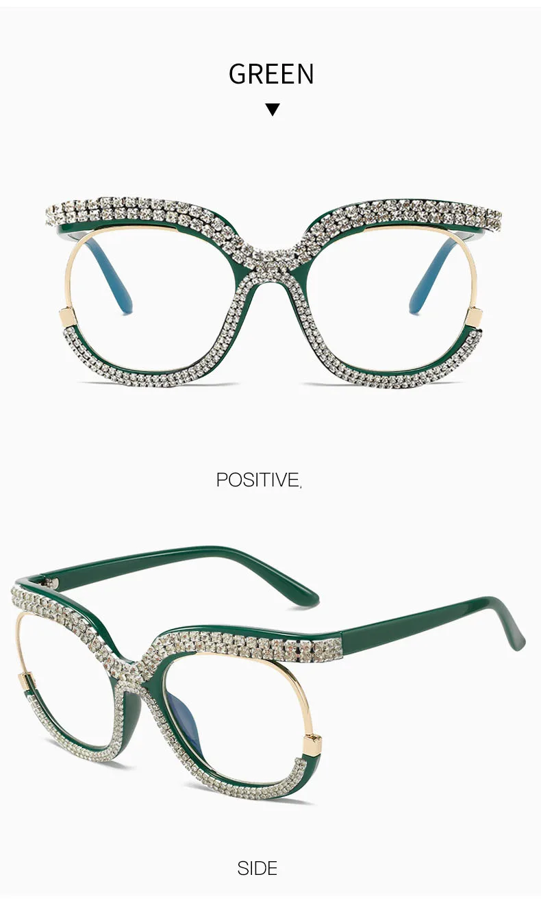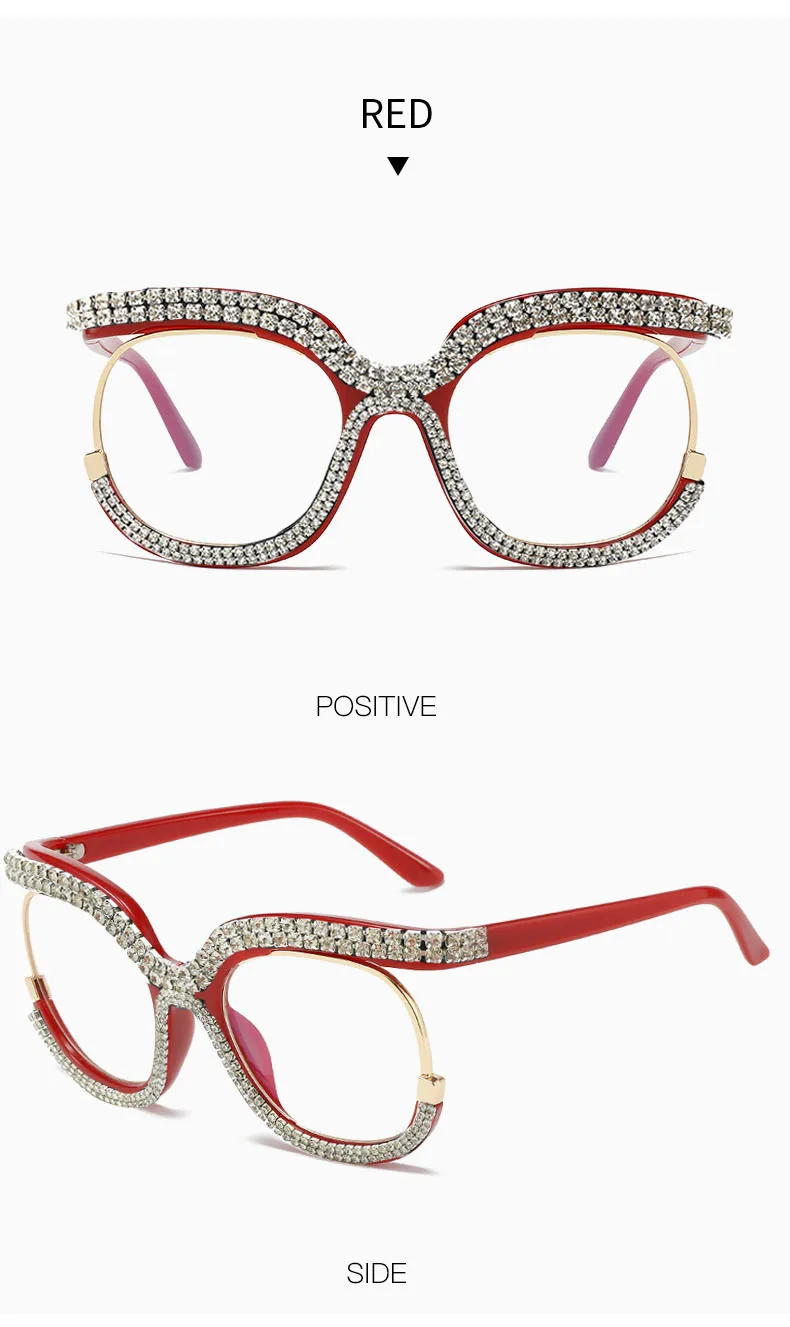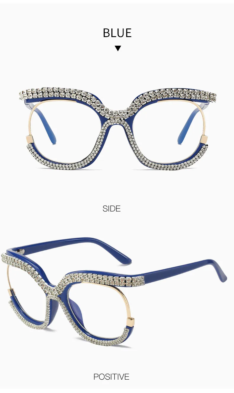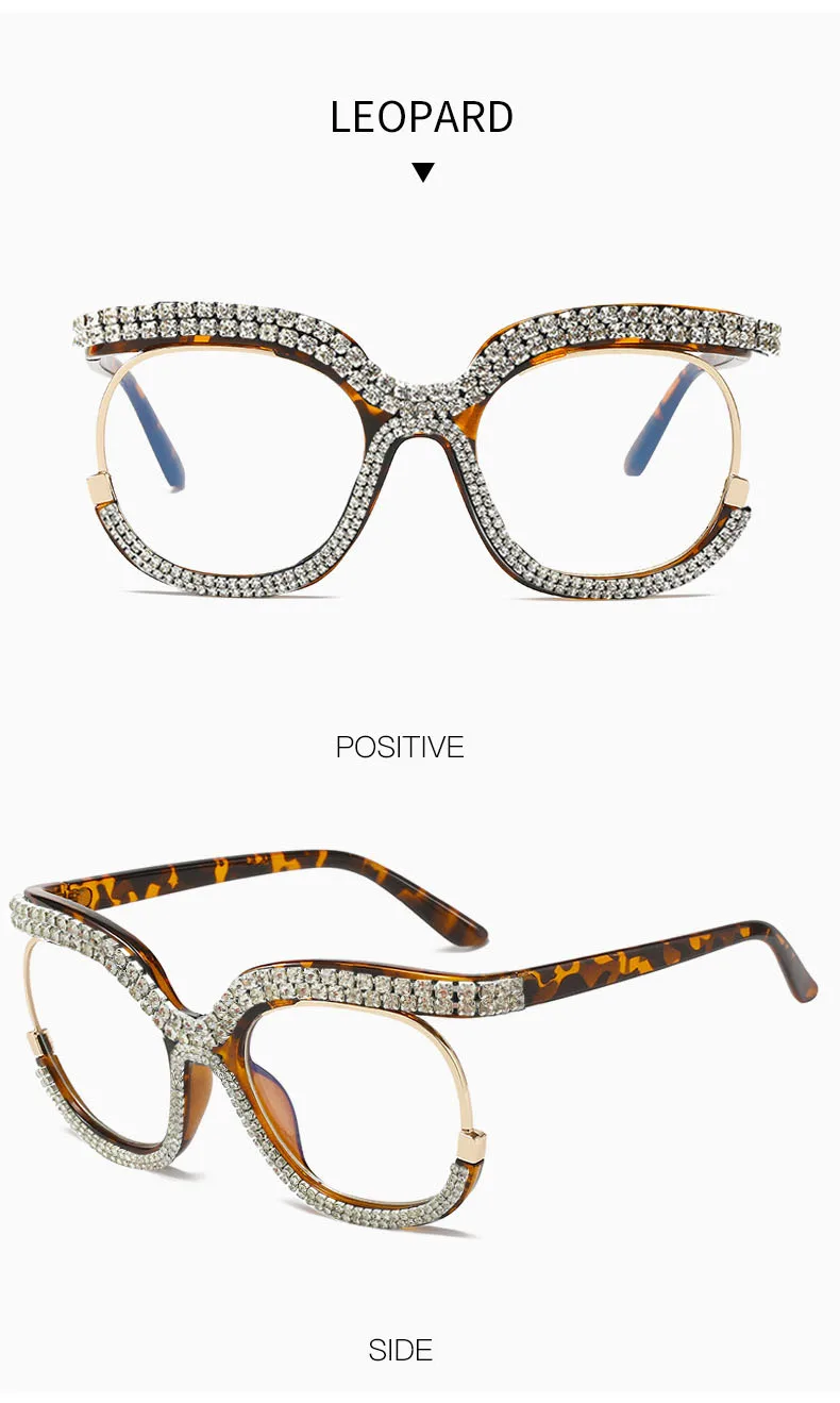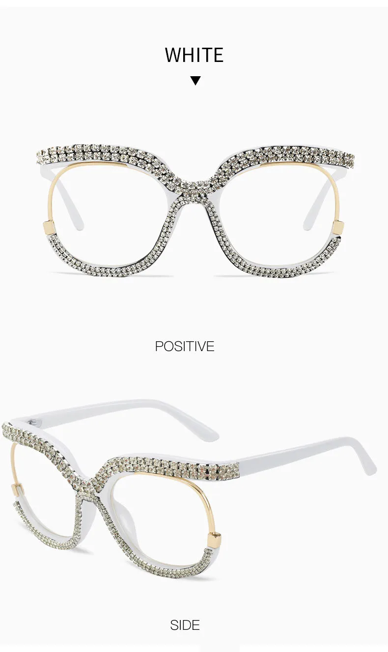 Crystal  Blingbling Round Eyeglasses for Women Oversized Rhinestone Transparent Clear Sunglasses Optical Glasses Frames