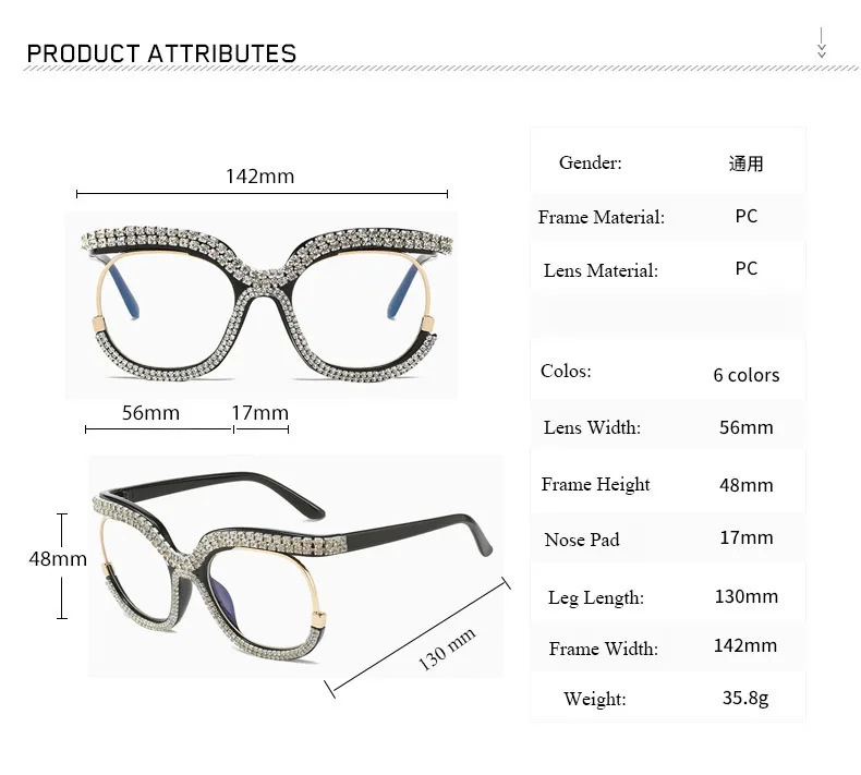 Crystal Blingbling Round Eyeglasses for Women Oversized Rhinestone Transparent Clear Sunglasses Optical Glasses Frames