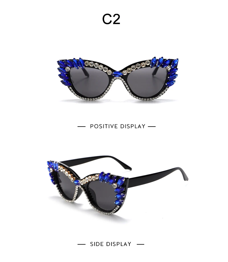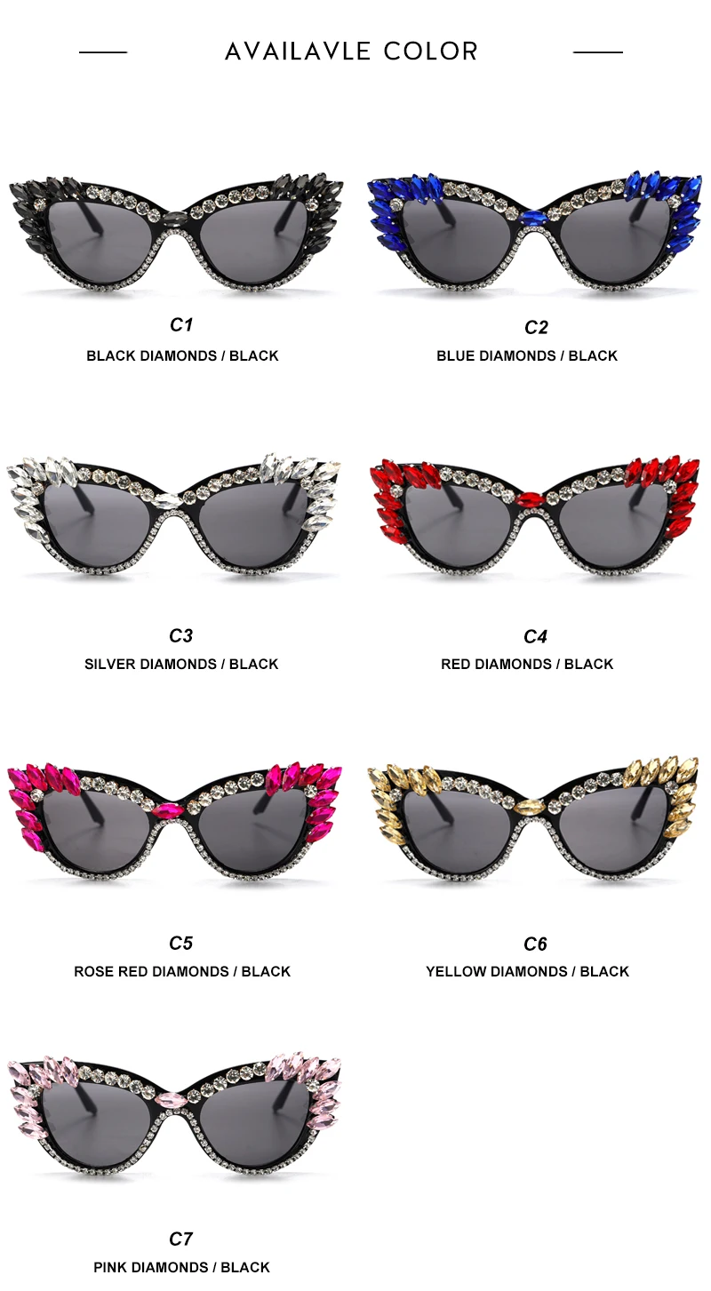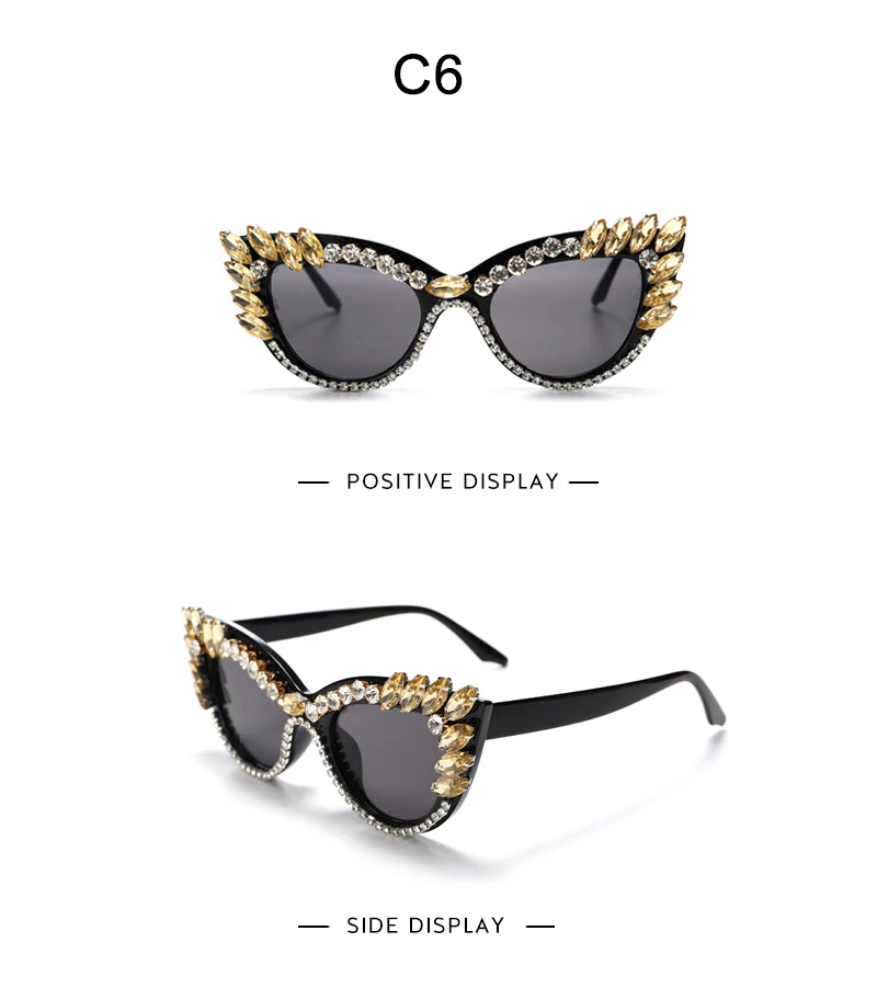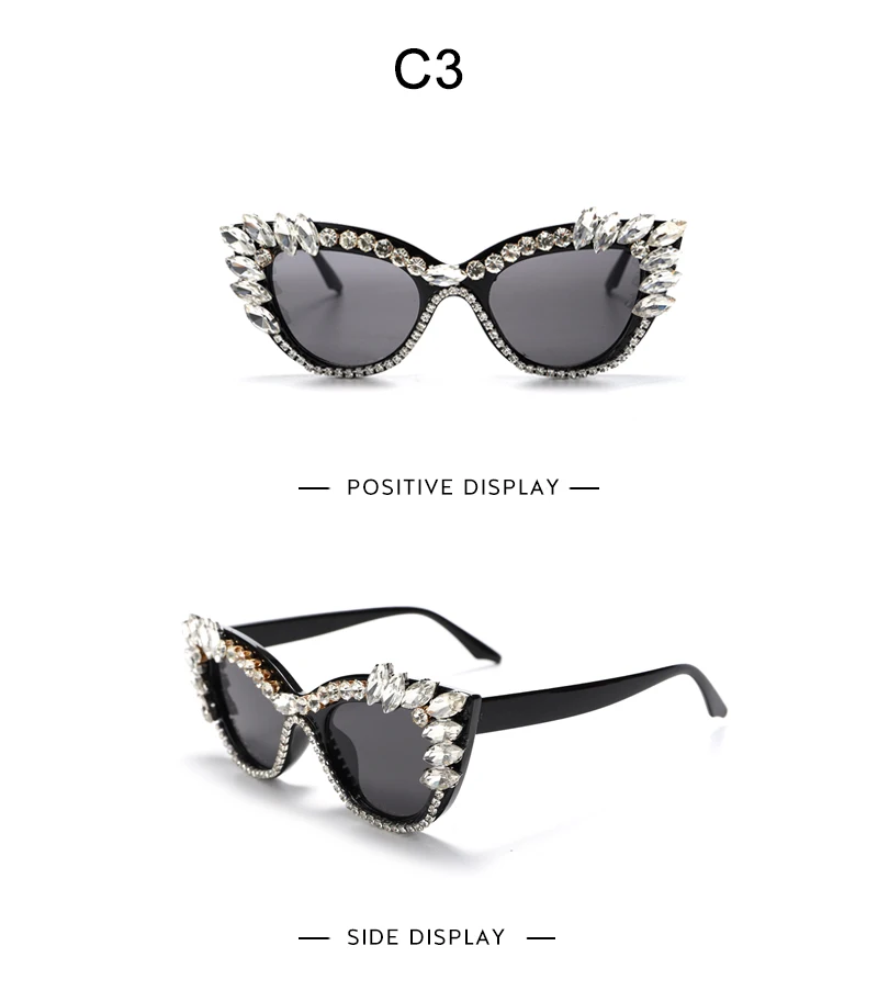 Diamond Cat Eye Sunglasses Women Rhinestone Sun Glasses  Brand Designer Crystal Sexy Frame Rhinestone Eyewear Oculos