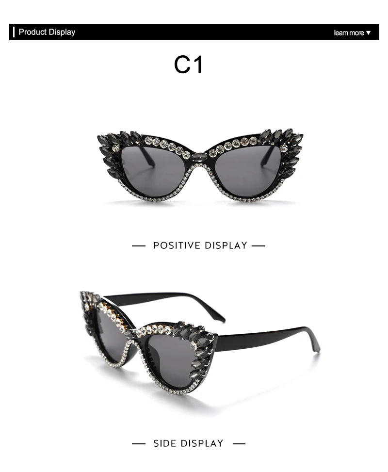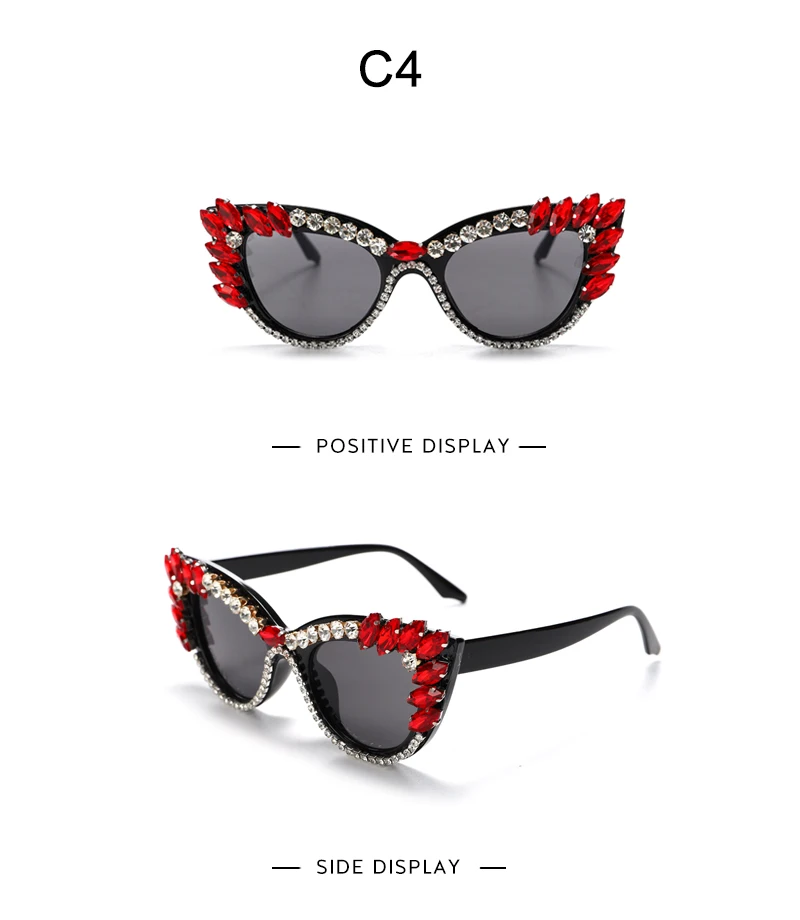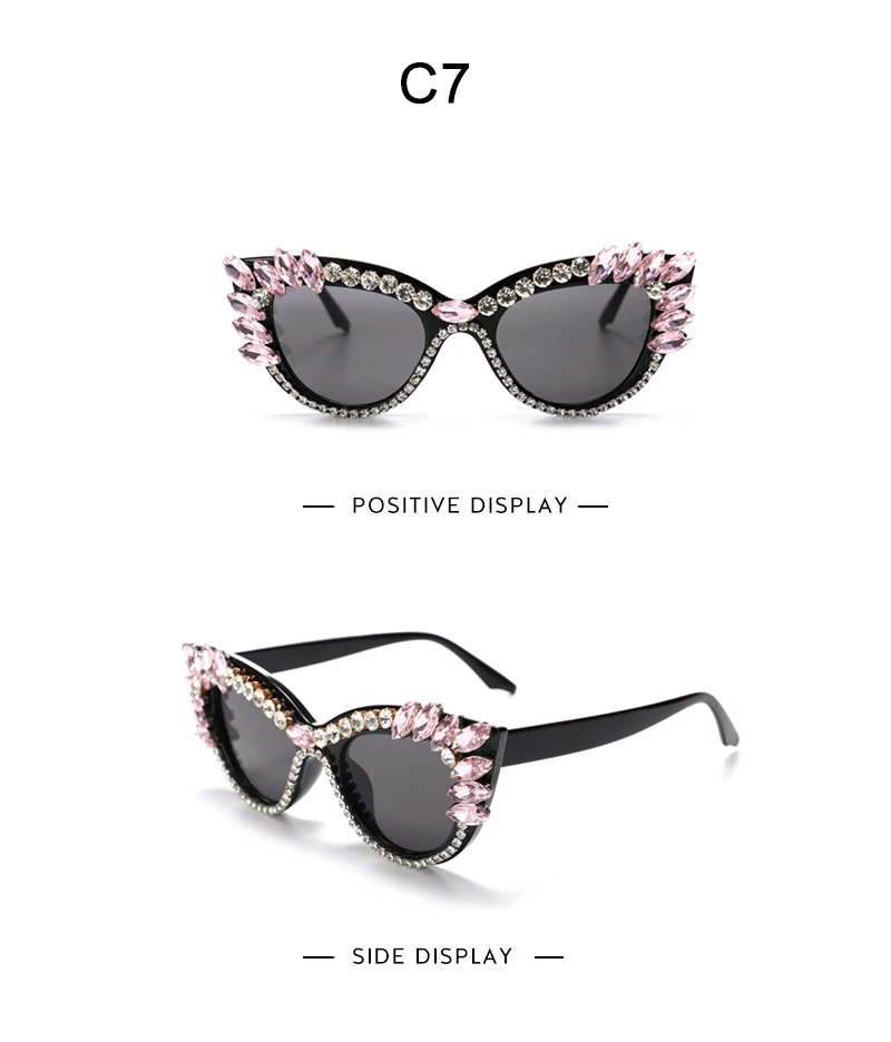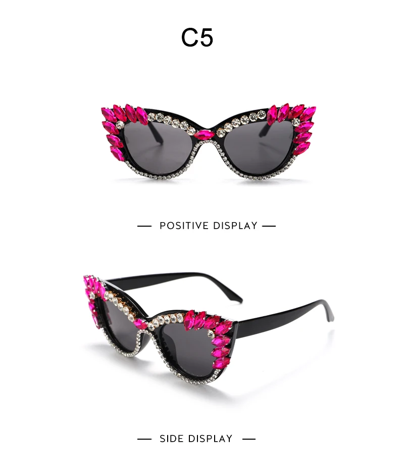Diamond Cat Eye Sunglasses Women Rhinestone Sun Glasses  Brand Designer Crystal Sexy Frame Rhinestone Eyewear Oculos
