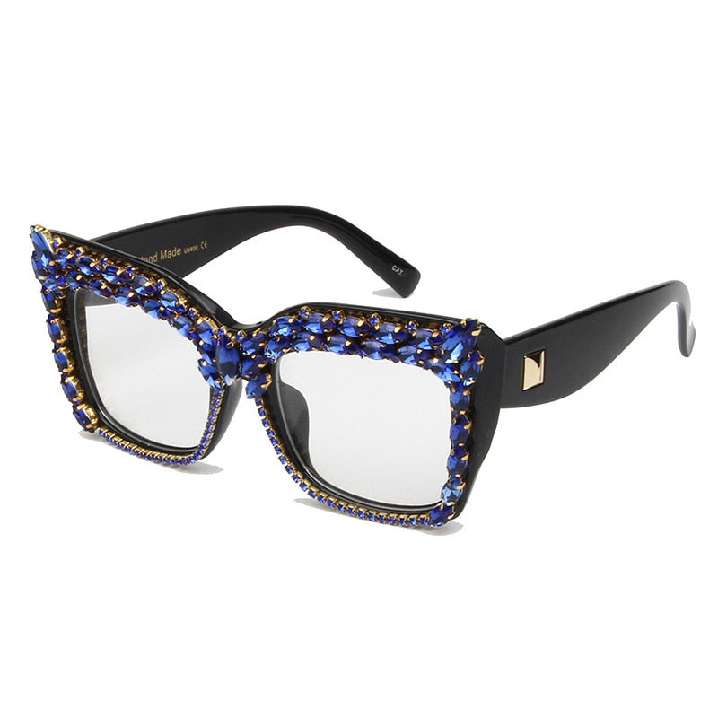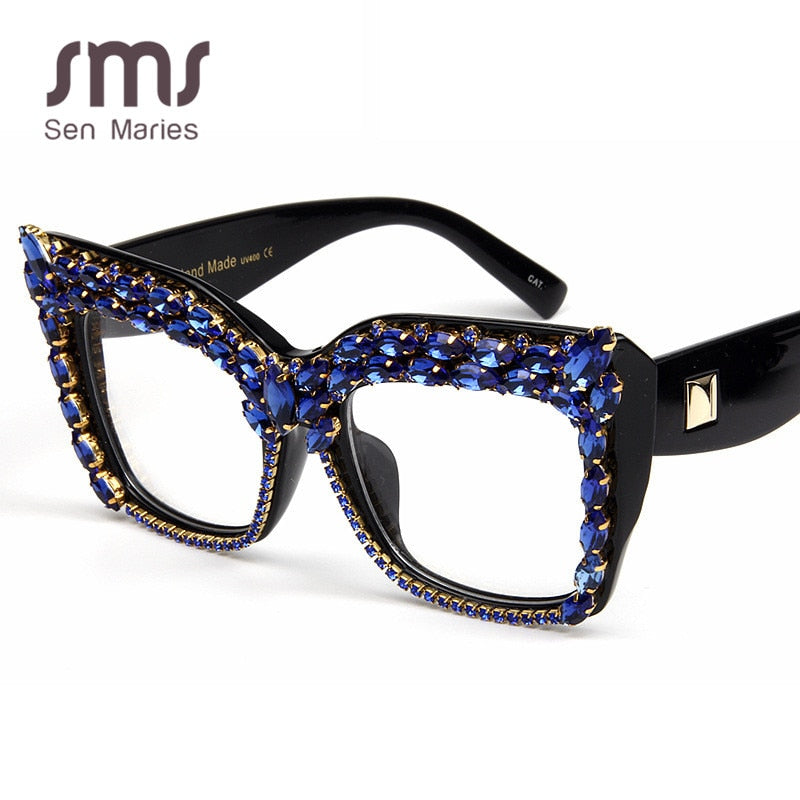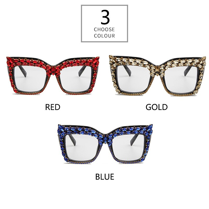 Occhiali con diamanti Donna Strass Cat Eye Occhiali da trapano oversize Montatura Donna Uomo Rosso Blu Occhiali da vista oculos