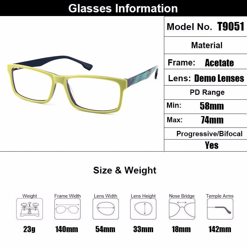 Gmei Optical T9051 Acetate Full-Rim Rectangle Green Front Frame Eyeglasses for Women and Men Spectacles Eyewear