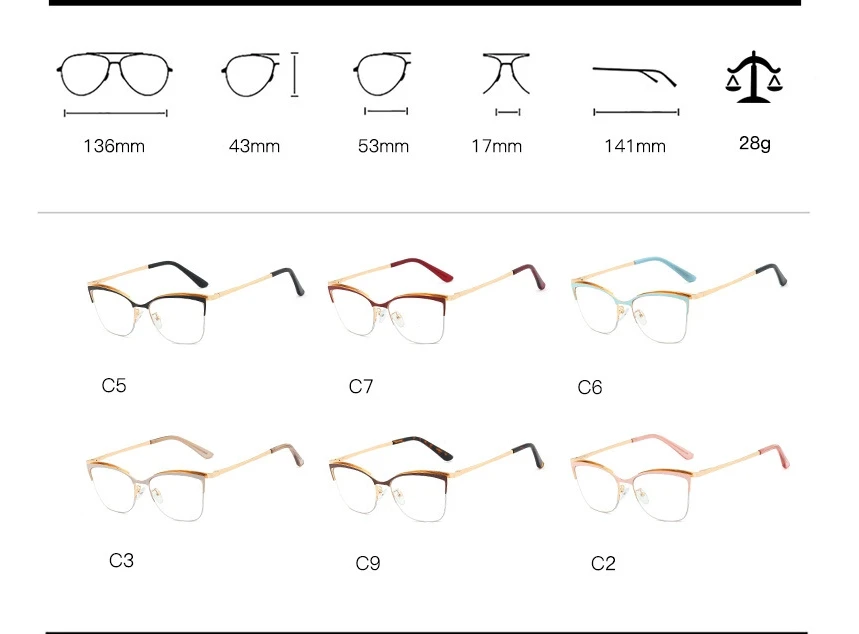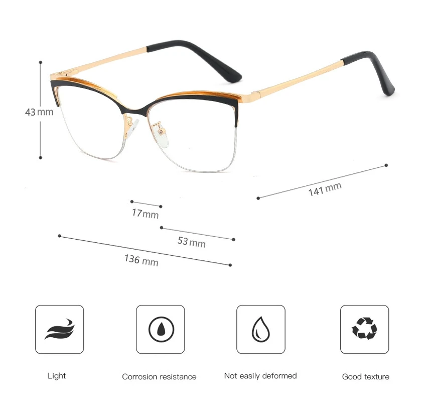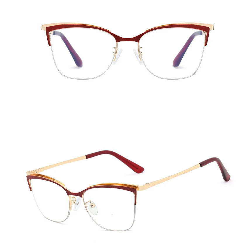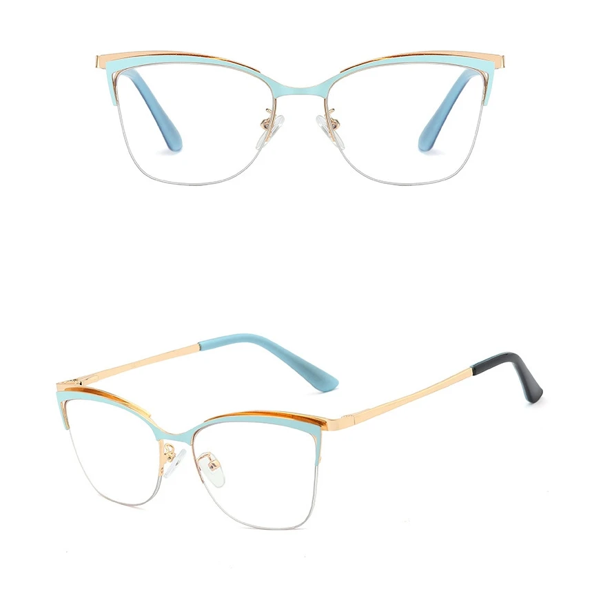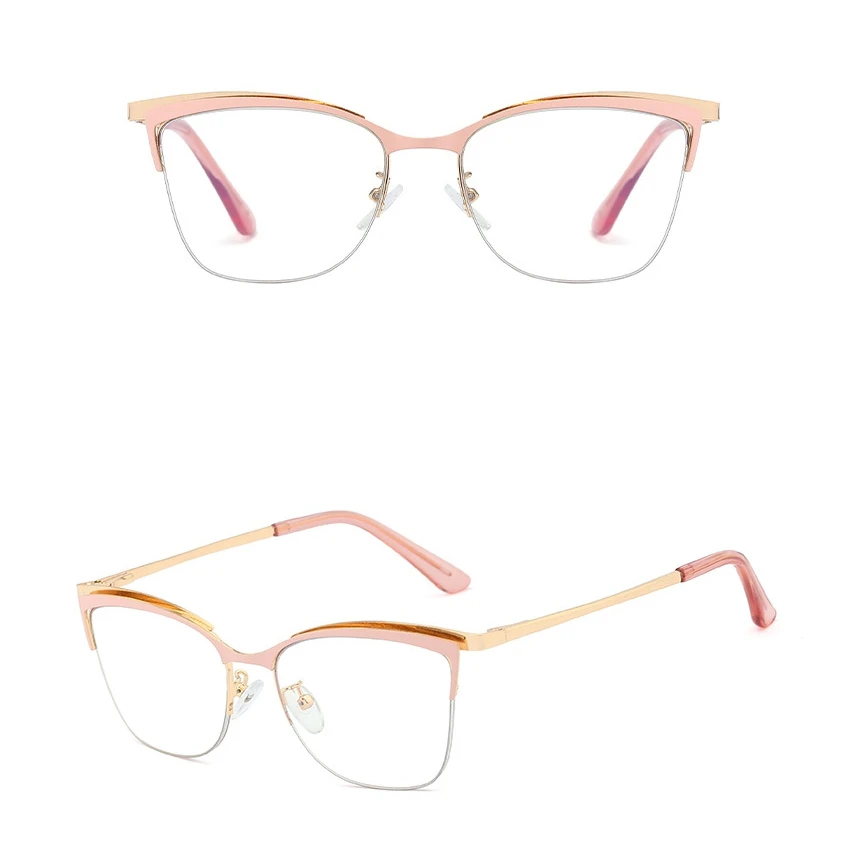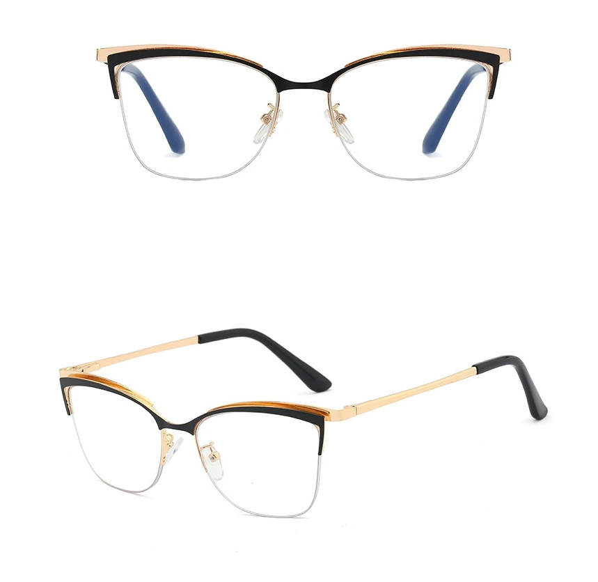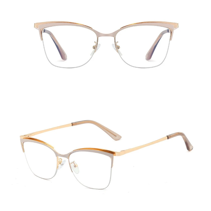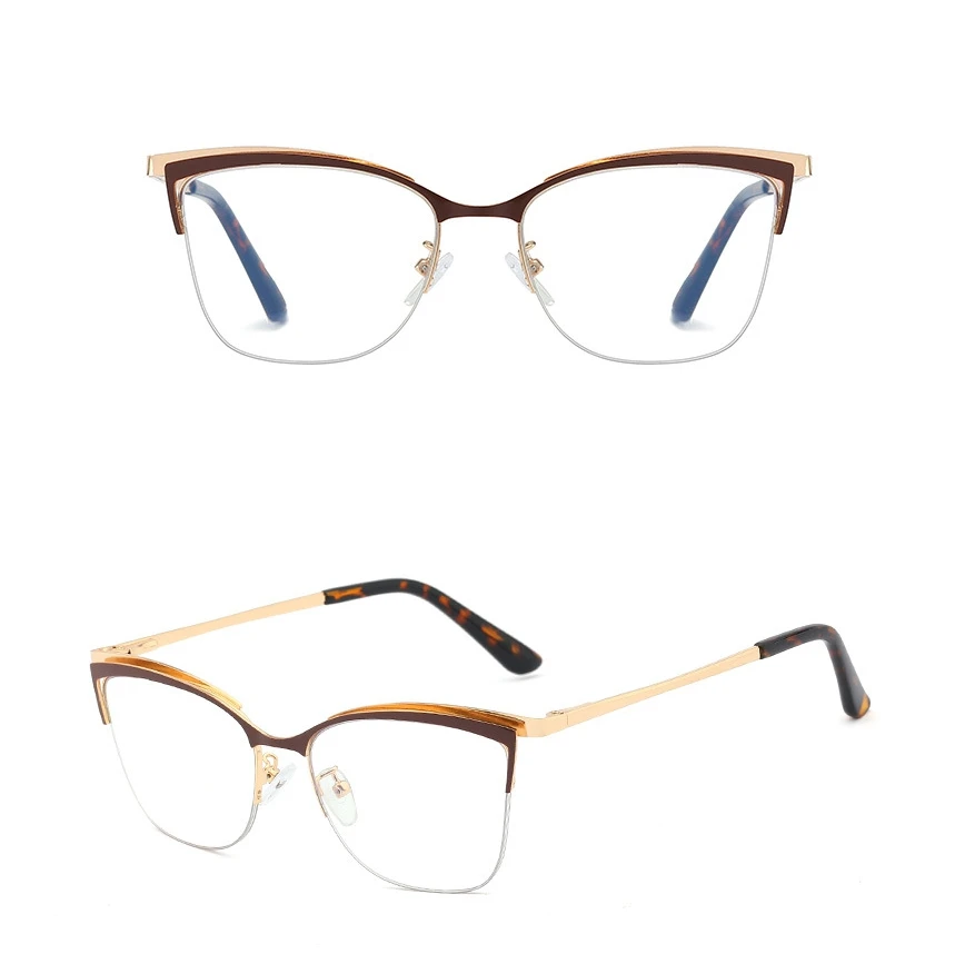 Half Frame Cat Eye Anti Blue Light Optical Glasses Frames Women Men Designer Metal Eyeglasses