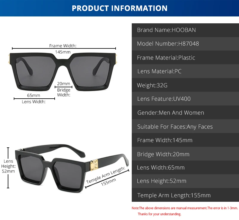 HOOBAN 2023 Square Women Sunglasses Brand Designer Thick Frame Men Sun Glasses Male Shades UV400 Gafas De Sol