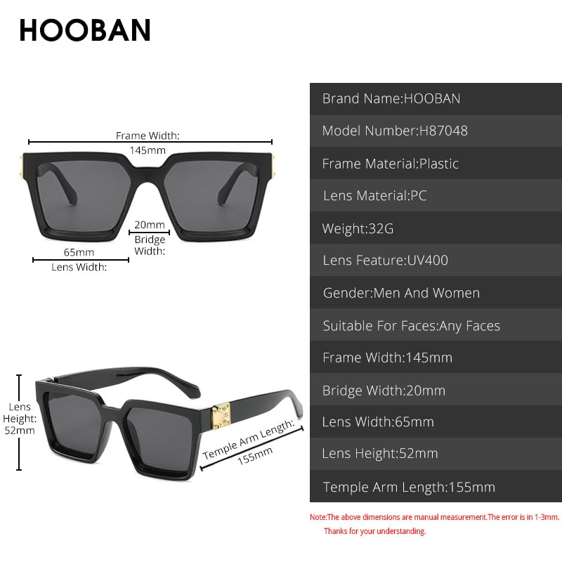 HOOBAN 2023  Square Women Sunglasses Brand Designer Thick Frame Men Sun Glasses Male Shades UV400 Gafas De Sol