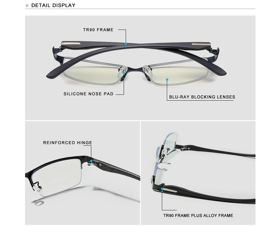 KINGSEVEN DESIGN Men TR90 Alloy Glasses Frame Male Square Ultralight Anti-Blue Light Computer Prescription Eyeglasses