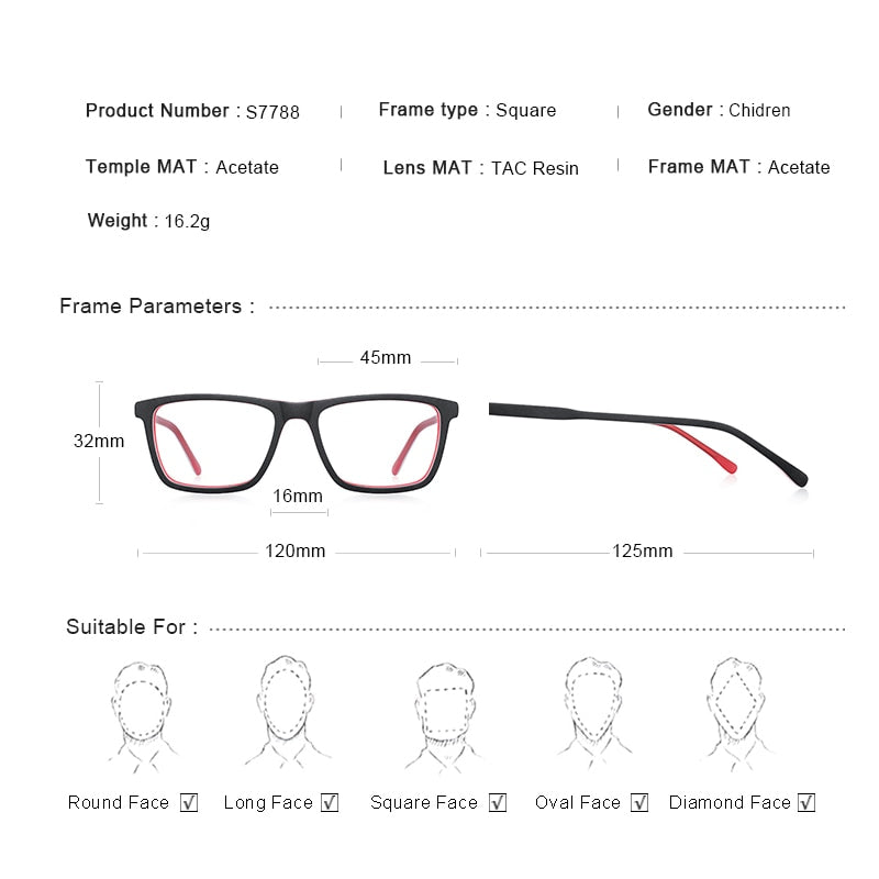 MERRYS DESIGN Ragazzi Anti Blue Ray Occhiali che bloccano la luce Occhiali quadrati per computer per bambini Montature per occhiali in acetato S7788FLG