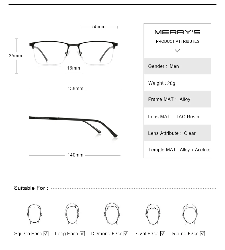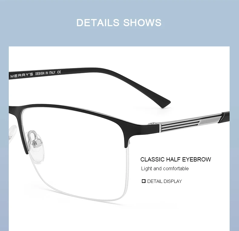 MERRYS DESIGN Men Alloy Glasses Frame Male Square Half Optical Ultralight Myopia Hyperopia Prescription Eyeglasses S2062