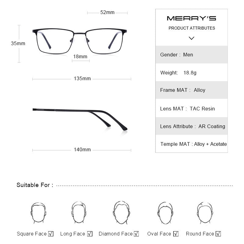 MERRYS DESIGN Uomo Lega Ottica Montature per occhiali Quadrato Maschile Ultraleggero Miopia Occhiali da vista Stile S2016