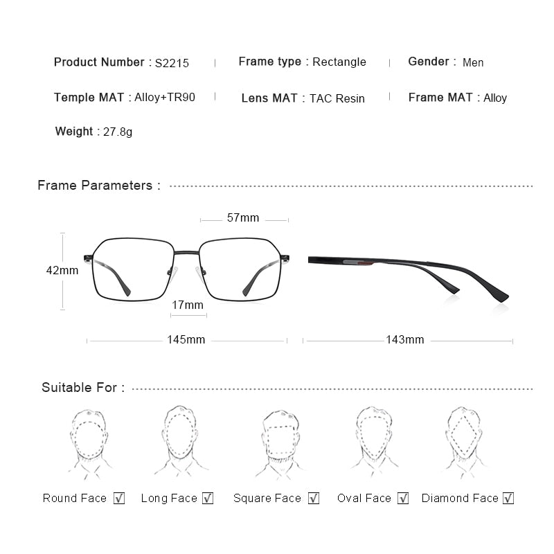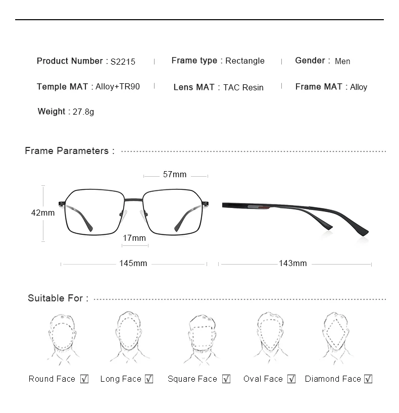 MERRYS DESIGN Men Classic Glasses Frames Rectangle Glasses Frame Optical Eyewear S2215