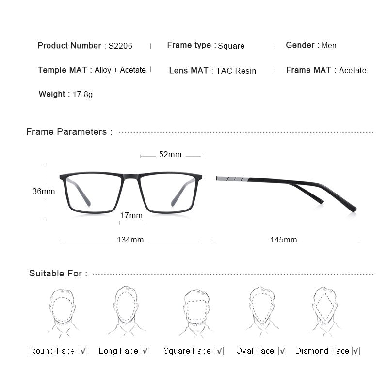 MERRYS DESIGN Men Square Glasses Frame Myopia Prescription Optical Eyewear Acetate Frames S2206