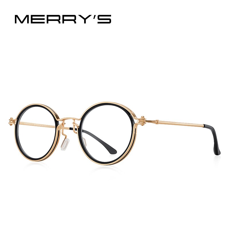 MERRYS DESIGN Men Steampunk Glasses Frame Popular Women Retro Round Eye Frames For Men Women Titanium Frame S2404