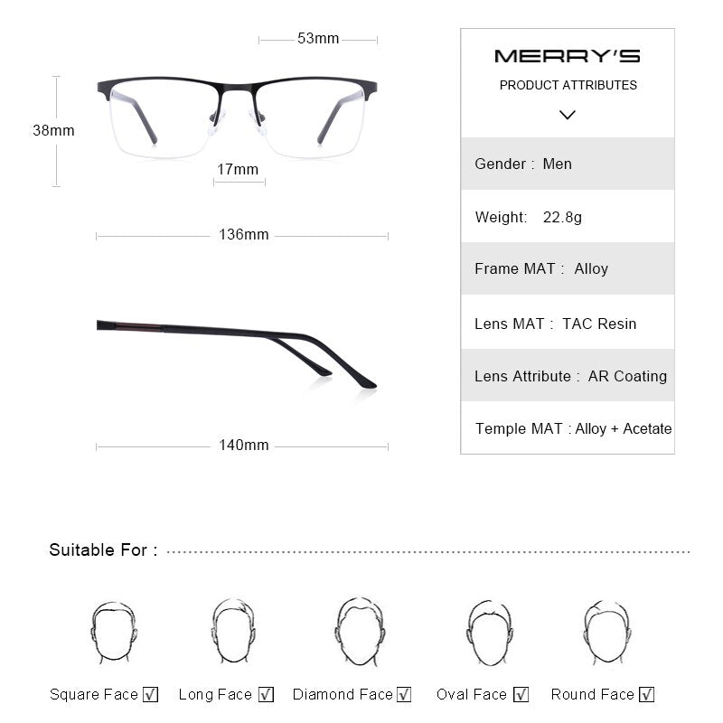 MERRYS DESIGN Men Titanium Alloy Glasses Frame Male Square Ultralight Eye Myopia Prescription Eyeglasses Male Half Optical S2031