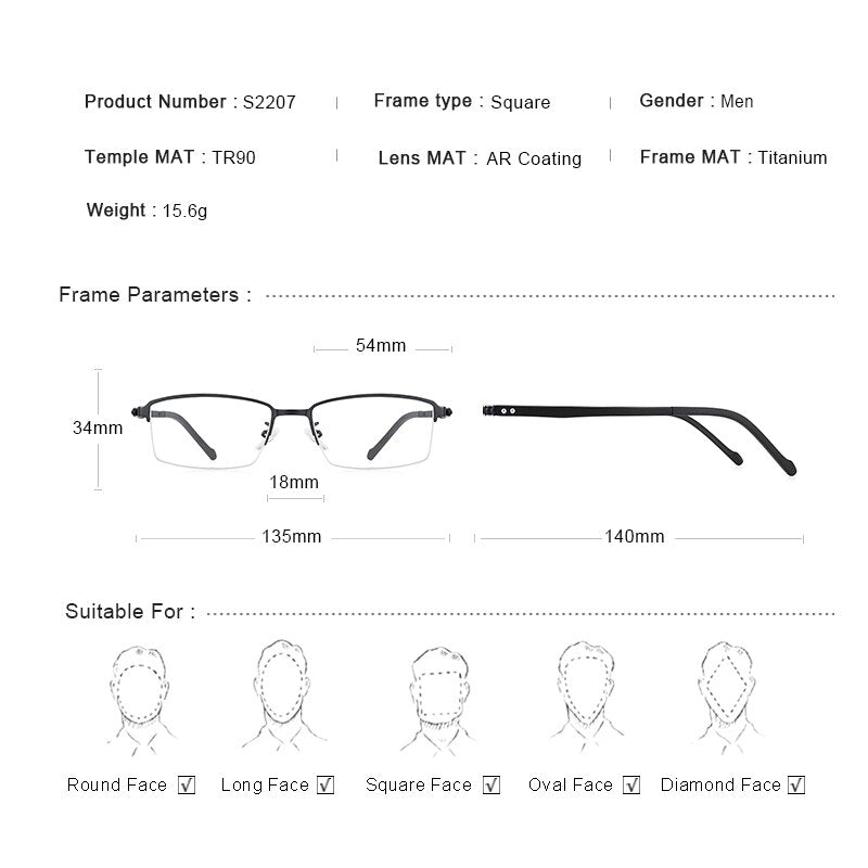 MERRYS DESIGN Men Titanium Alloy Glasses Frame Prescription Eyeglasses TR90 Legs Business Style Half Optical Frame S2207