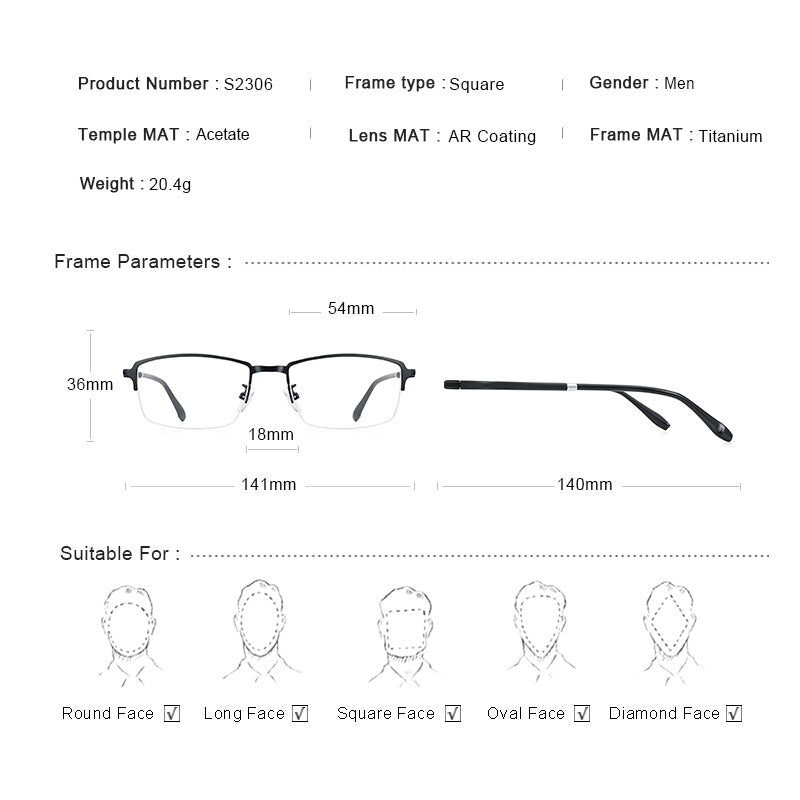 MERRYS DESIGN Men Titanium Alloy Half Glasses Frame Prescription Eyeglasses TR90 Legs Business Style Optical Frame S2306