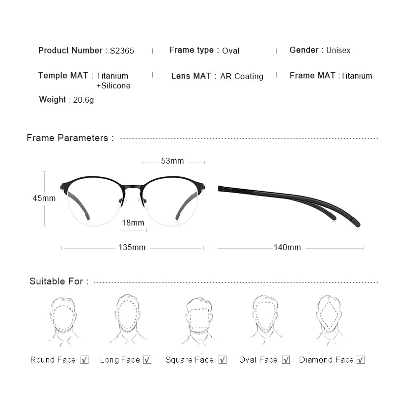 MERRYS DESIGN Men Titanium Alloy Optical Glasses Frame Ultralight Oval Men Prescription Eyeglasses Antiskid Silicone Legs S2365
