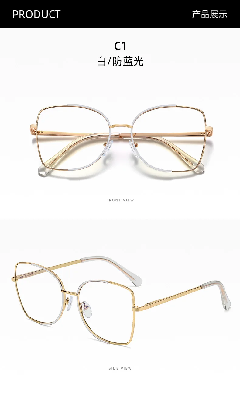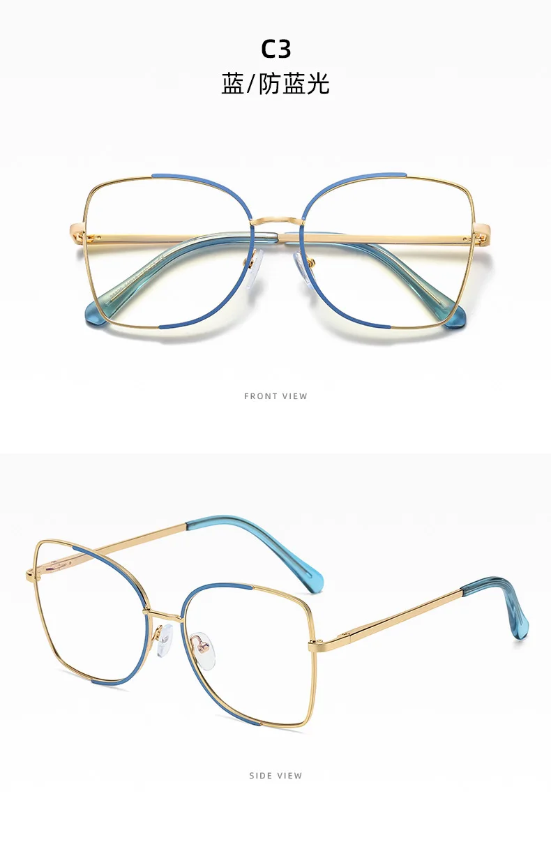 Oversized Blue Light Blocking Eyeglasses Women Metal Glasses Frames Men Big Ladies Computer Glasses Retro Eyewear