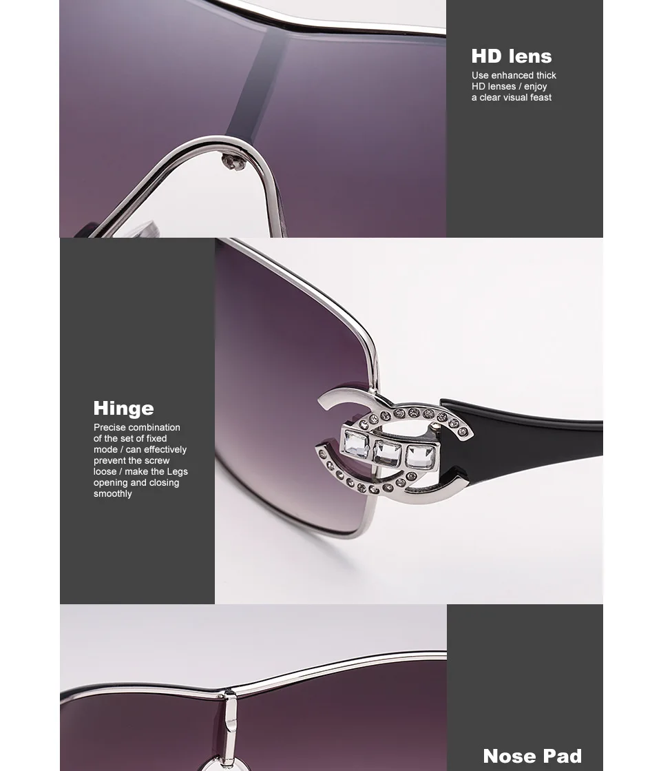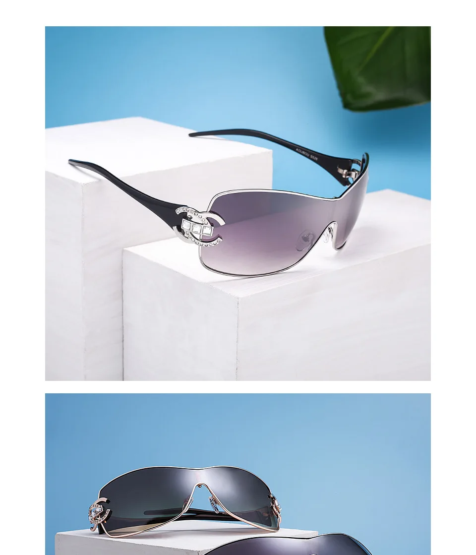 Oversized Diamond Drcro Sunglasses 2023 Brand Designer One Pieces Sunglasses Women Metal Sunglasses Large Frame