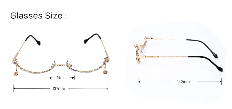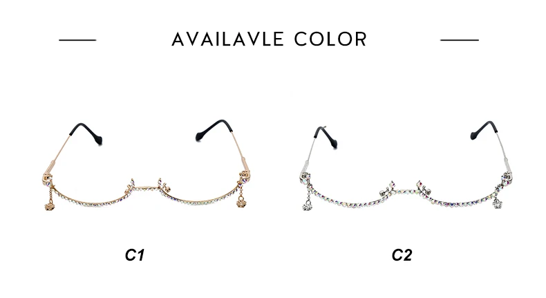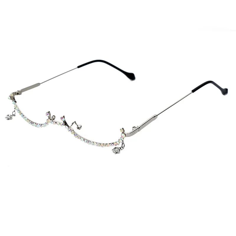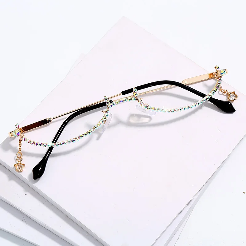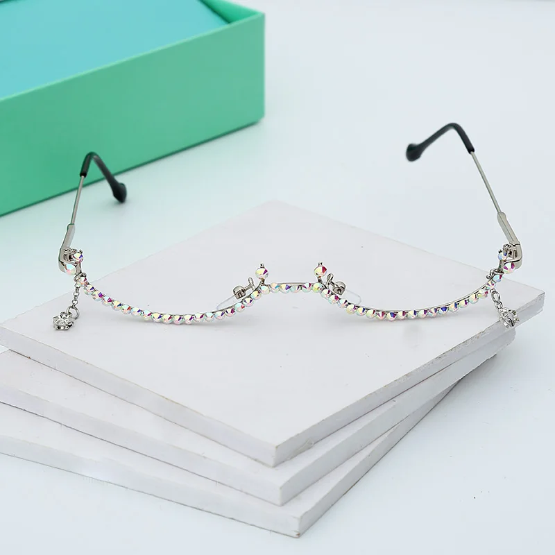 Occhiali da vista con strass Montatura in lega per donna 2023 Occhiali con mezza montatura con decorazione a catena con goccia d'acqua con diamanti