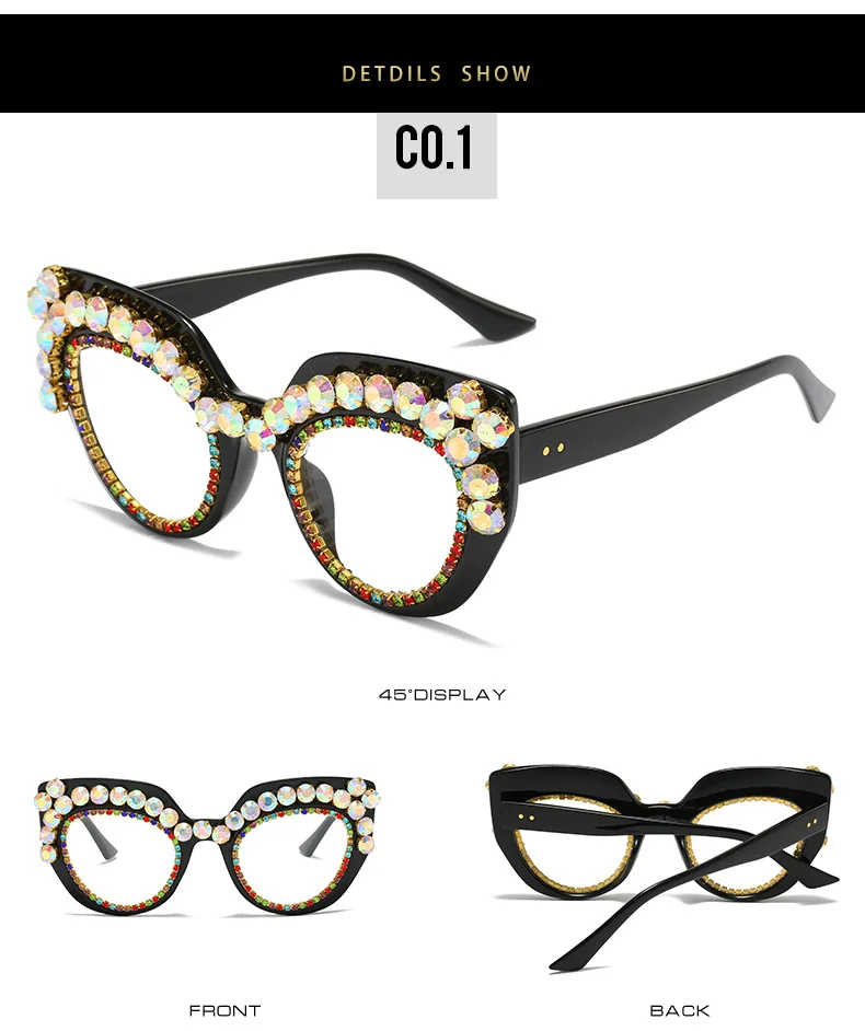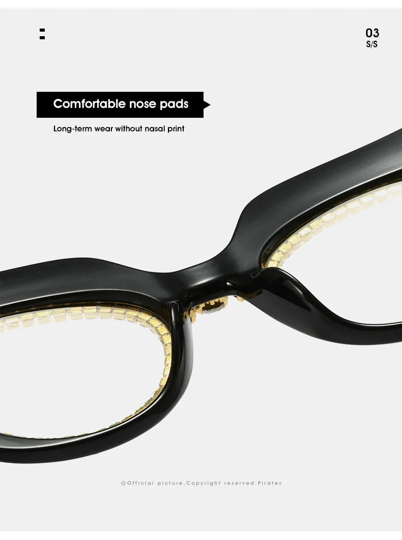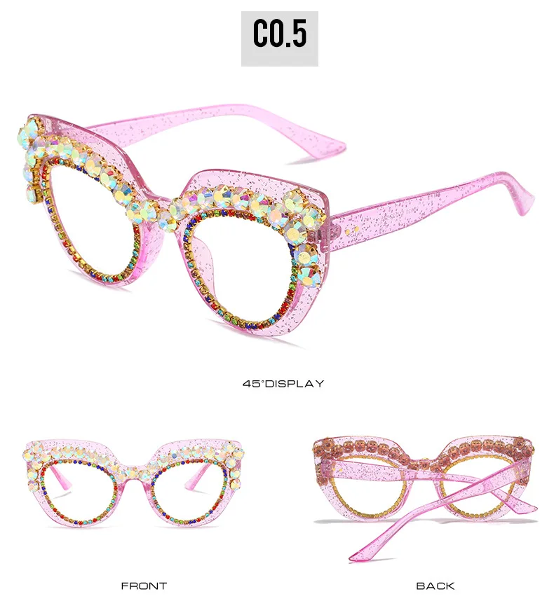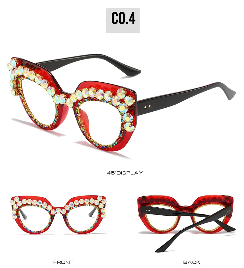 Occhiali da vista in cristallo sexy cat eye per donna Occhiali da vista con montatura in diamante di marca Occhiali da ipermetropia retrò hip-hop da donna