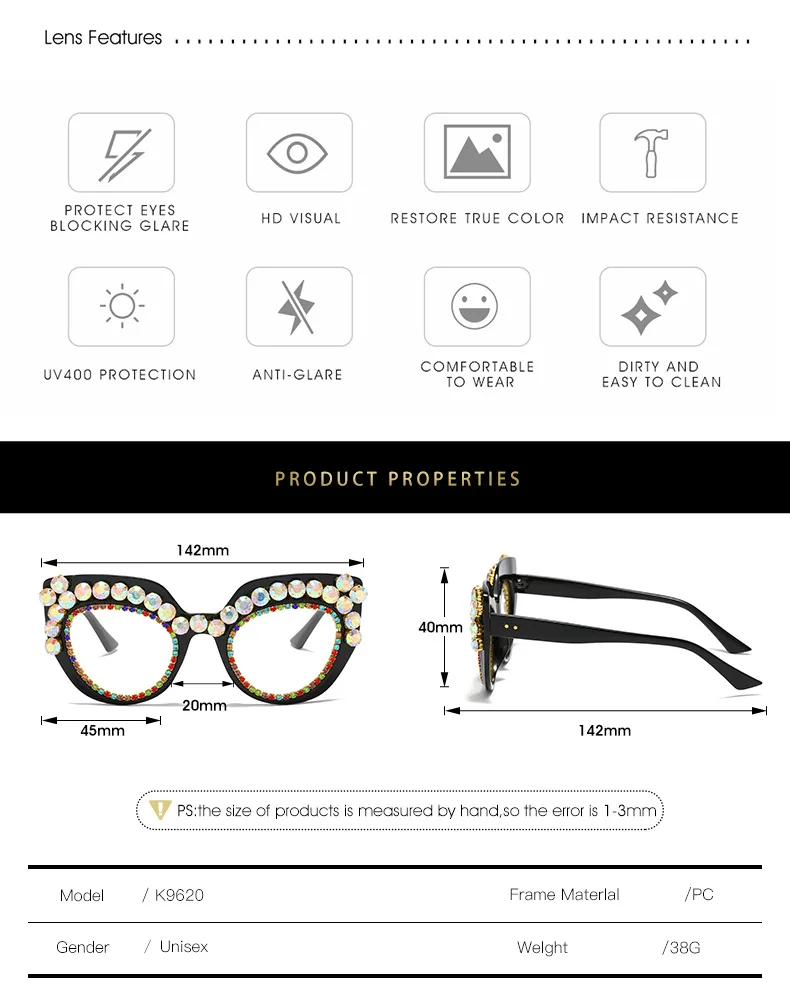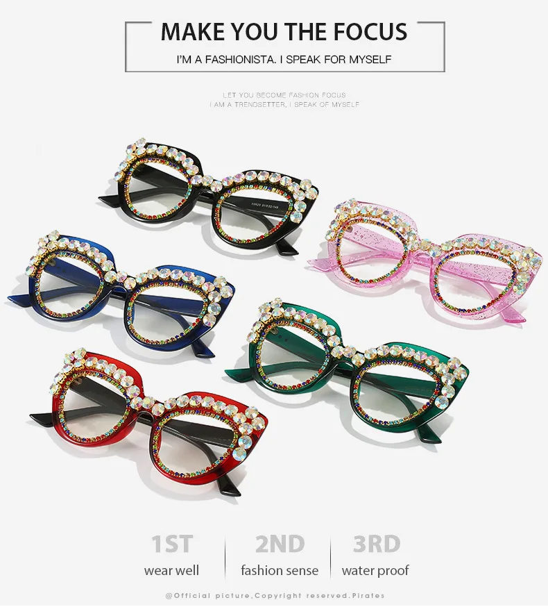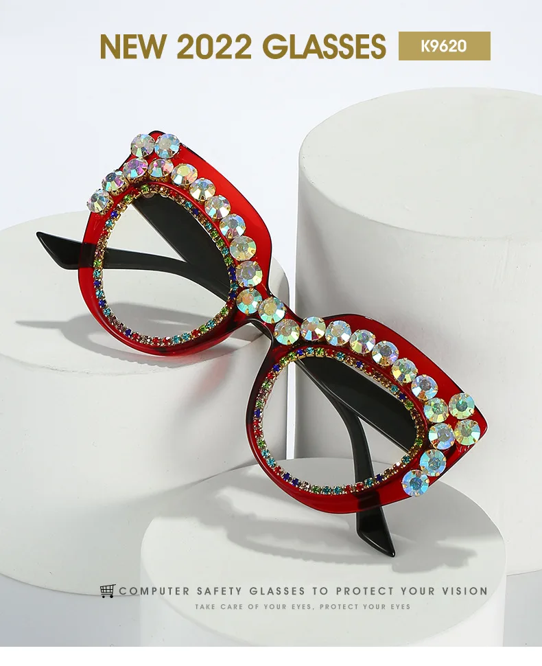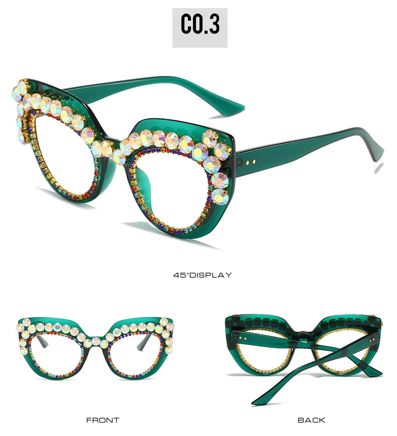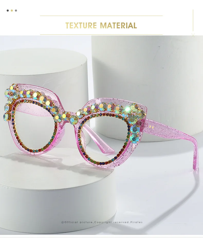 Occhiali da vista in cristallo sexy cat eye per donna Occhiali da vista con montatura in diamante di marca Occhiali da ipermetropia retrò hip-hop da donna