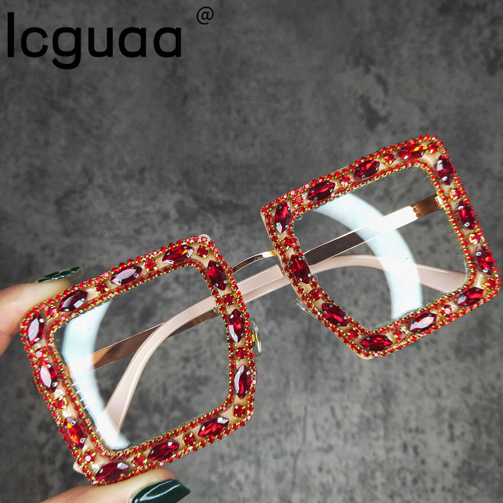 Occhiali quadrati trasparenti anti-luce blu da donna 2023 Montature per occhiali da vista oversize Occhiali da vista con diamanti