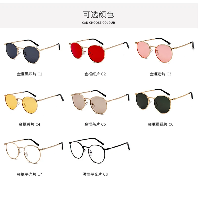 Fashion Clear Lens Metal Frame Sunglasses Retro Woman Glasses  Male Sun Glasses Round Gold UV400 Birthday Gift Items