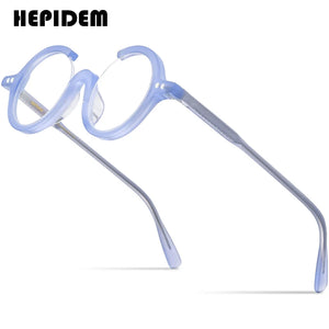 HEPIDEM Acetate Glasses Women Three Fourths 3/4 Round Prescription Eyeglasses Frame Men Optical Spectacles Eyewear 9191