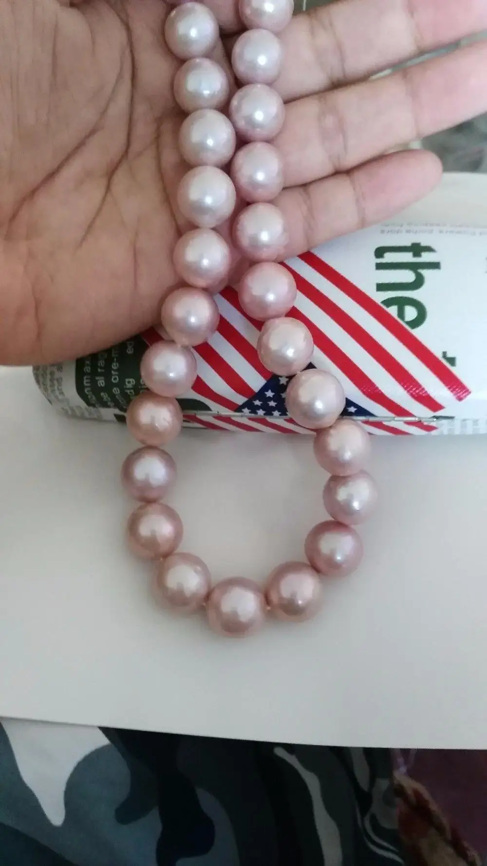 10-11 mm Genuine Natural south sea pink pearl necklace 18 14 K gold